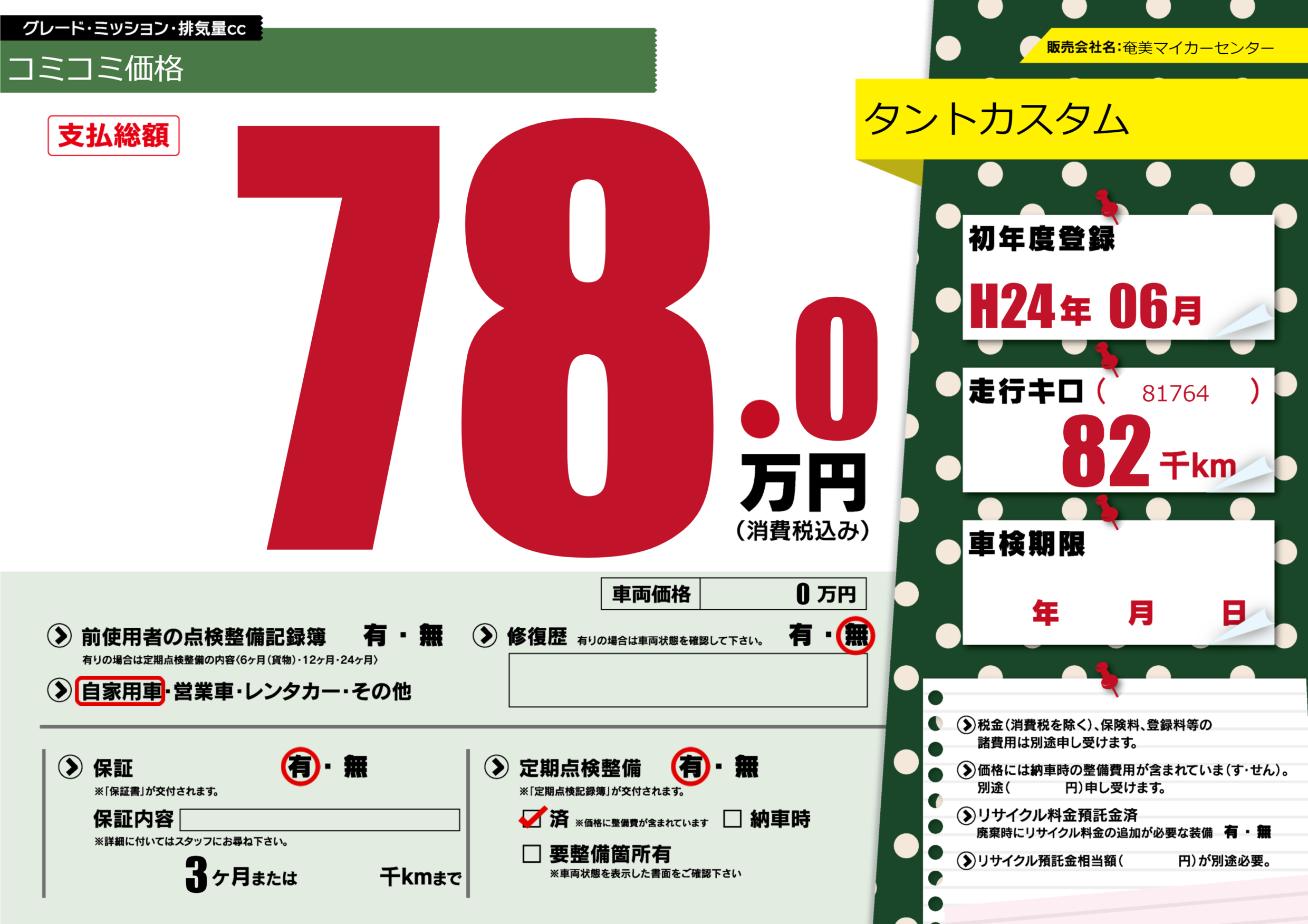 | 定期点検整備 | 定期点検整備あり 定期点検整備済み | ||