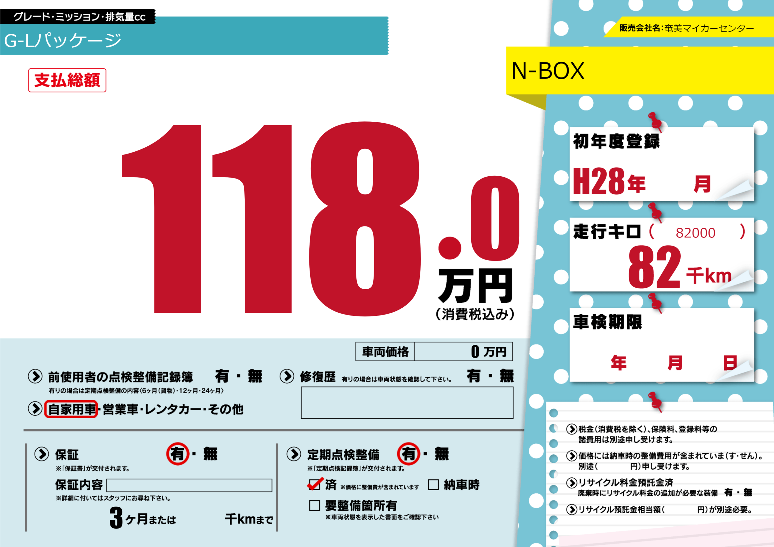 | 定期点検整備 | 定期点検整備あり 定期点検整備済み | ||