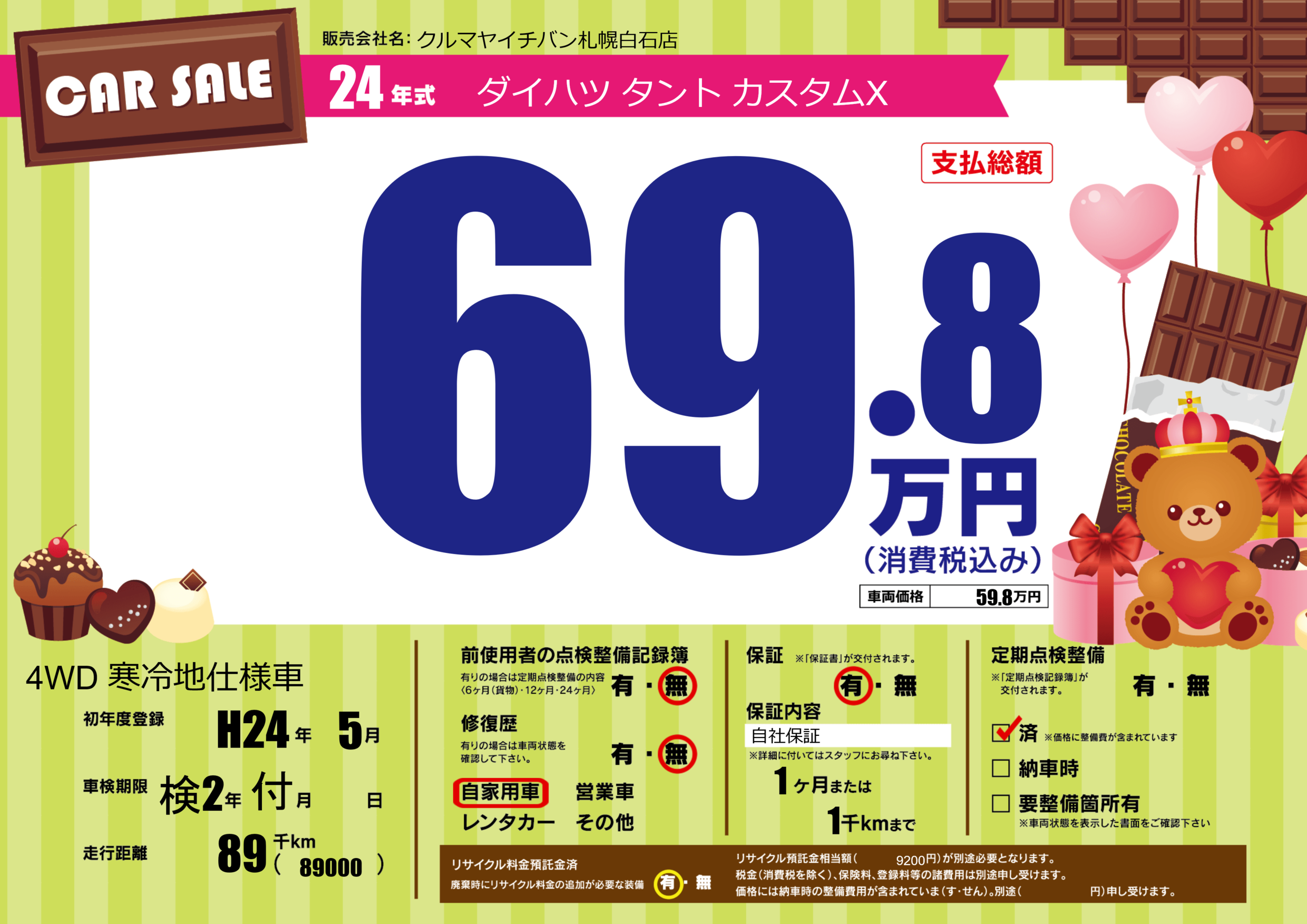 | 定期点検整備 | 定期点検整備済み | ||
