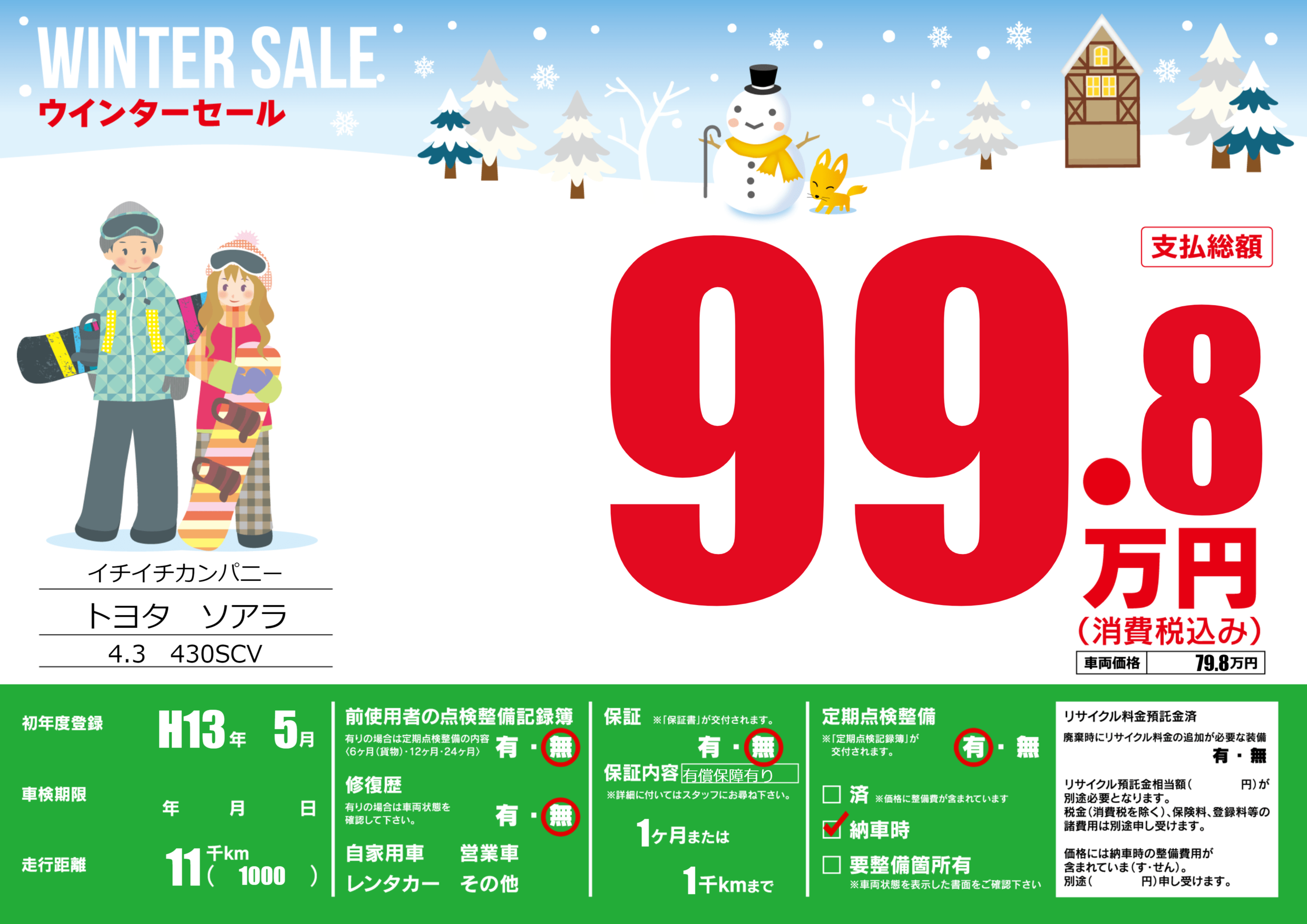 | 定期点検整備 | 定期点検整備あり 納車時あり | ||