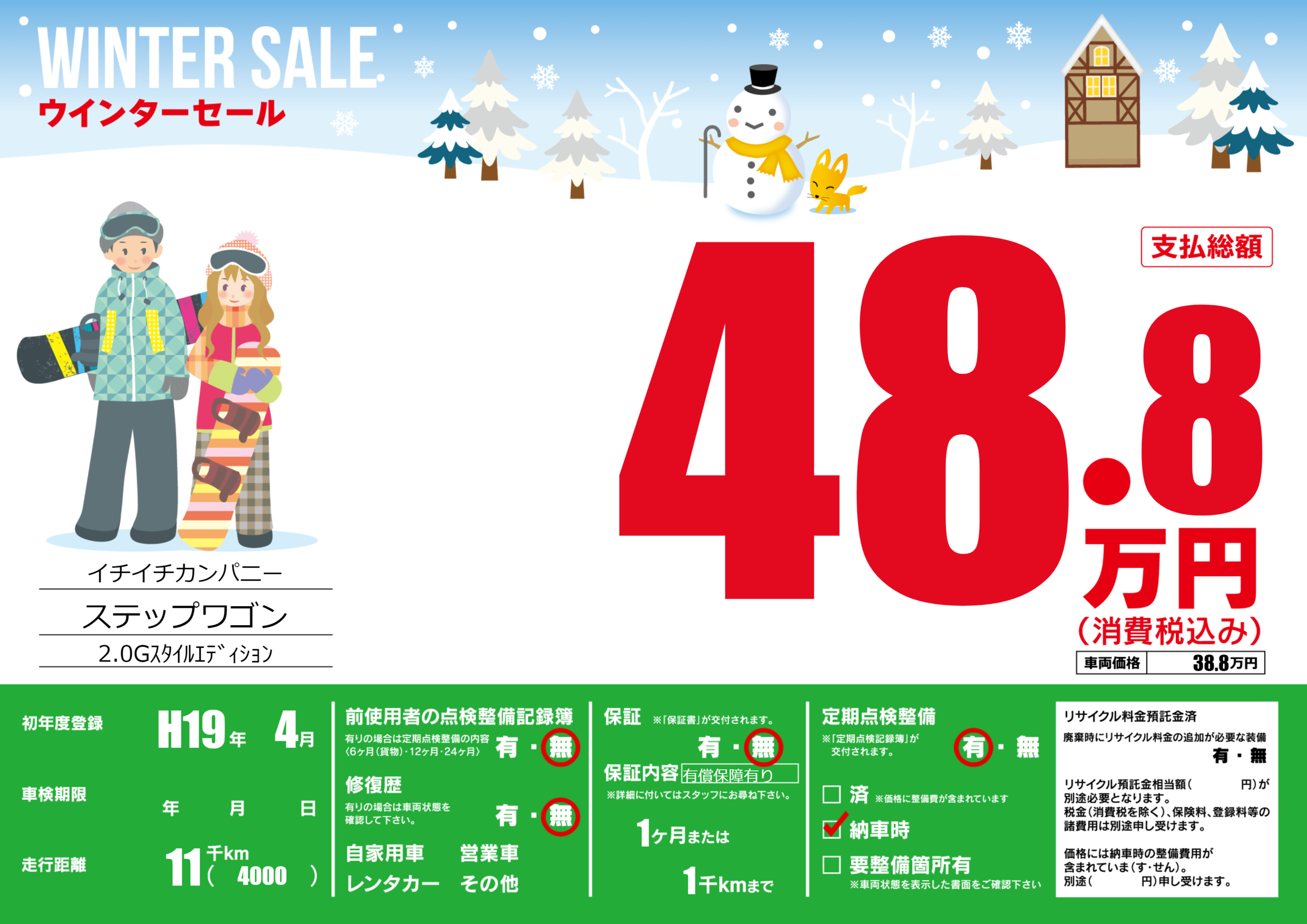 | 定期点検整備 | 定期点検整備あり 納車時あり | ||