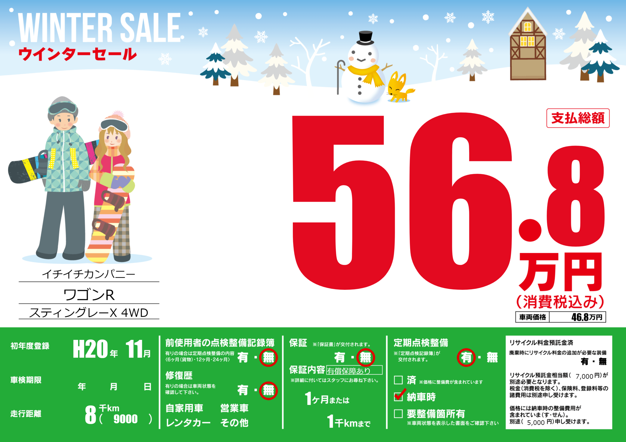 | 定期点検整備 | 定期点検整備あり 納車時あり | ||