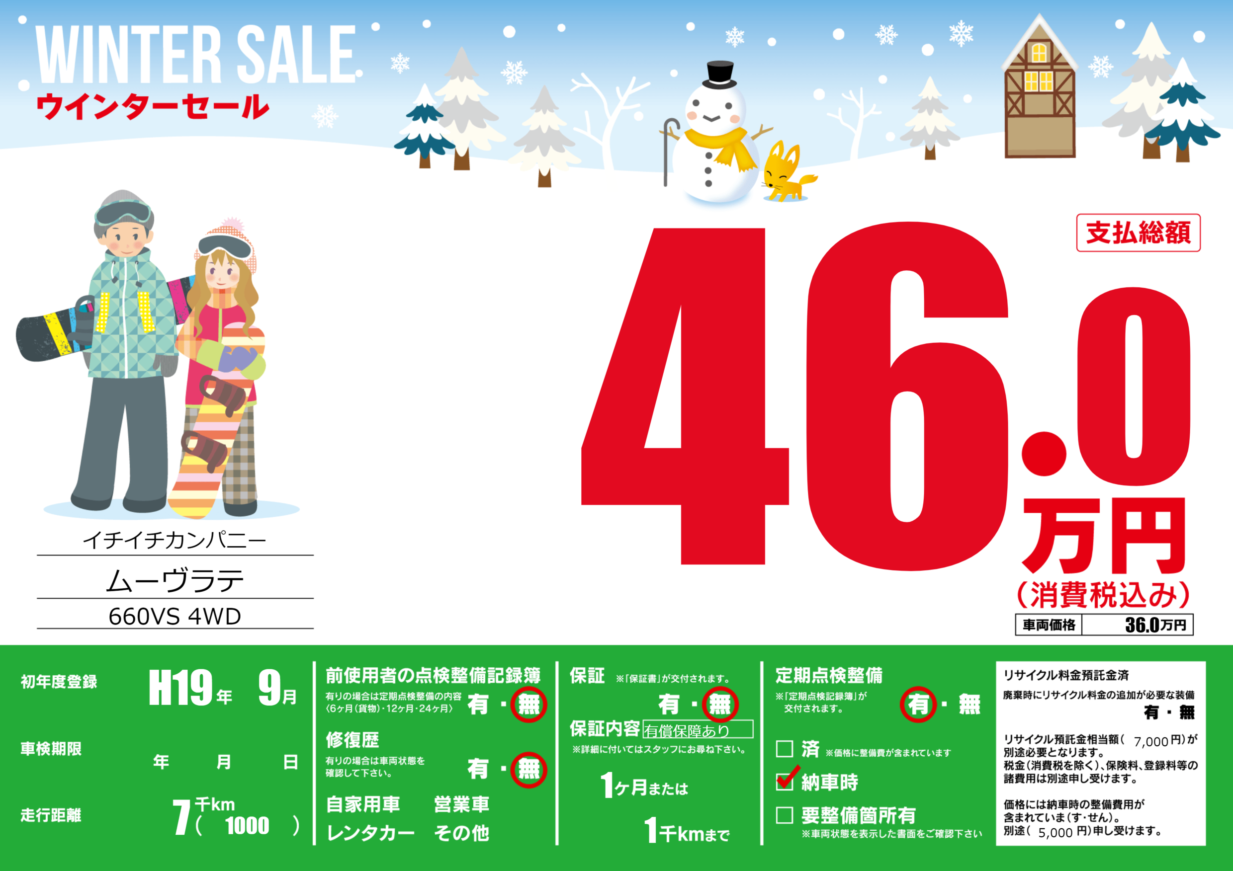 | 定期点検整備 | 定期点検整備あり 納車時あり | ||