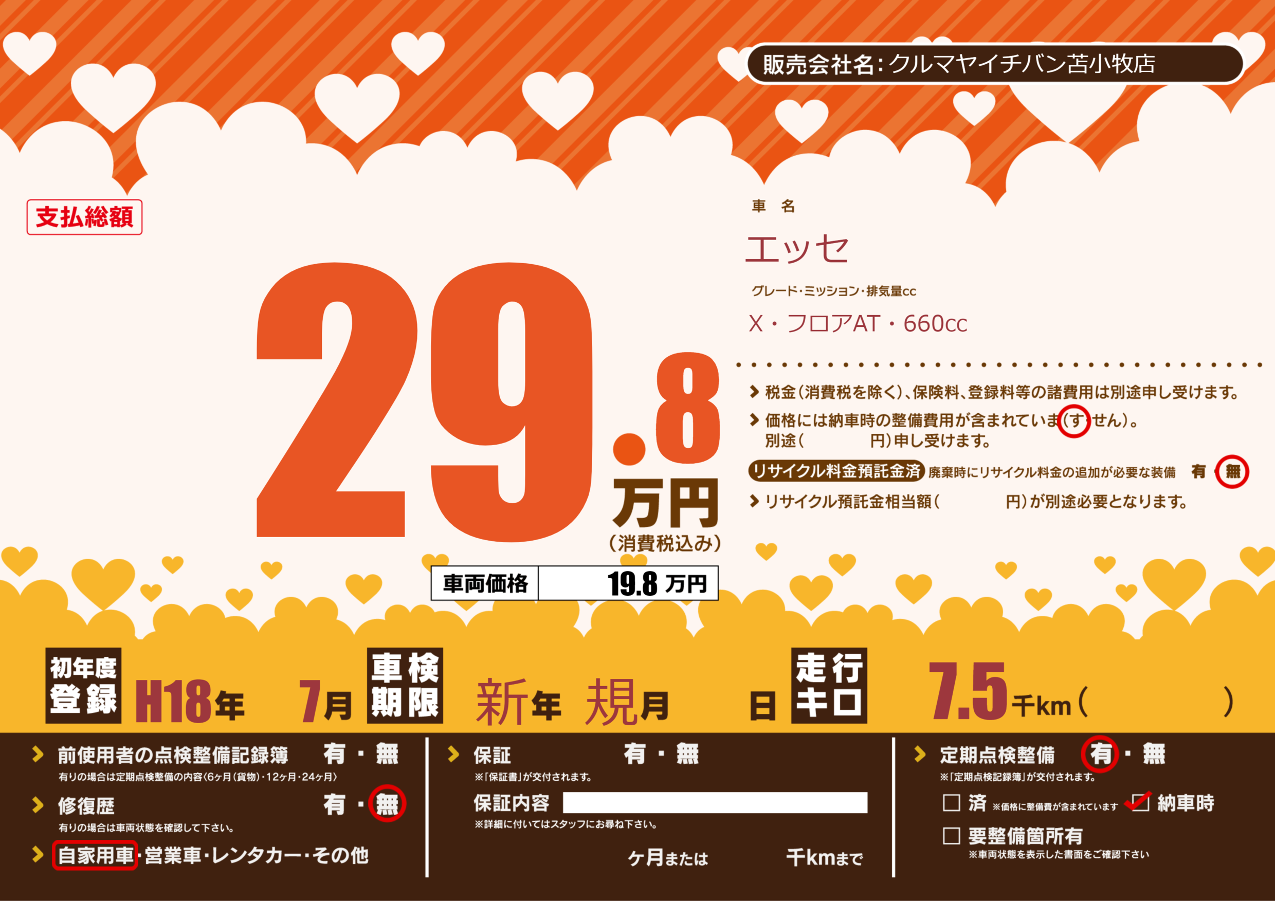 | 車名 | エッセ | グレード ミッション 排気量 |