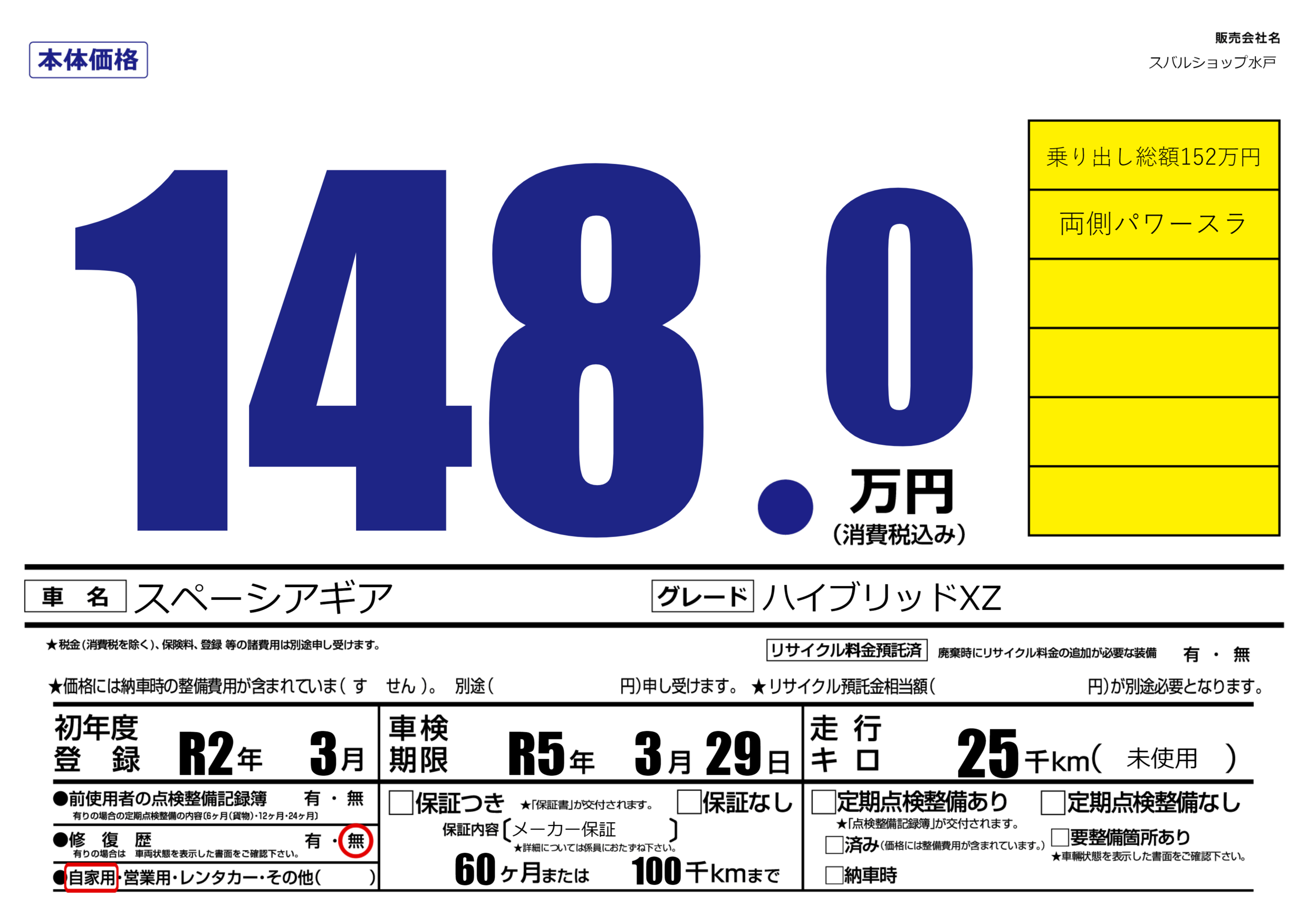 | 車名 | スペーシアギア | グレード ミッション 排気量 |