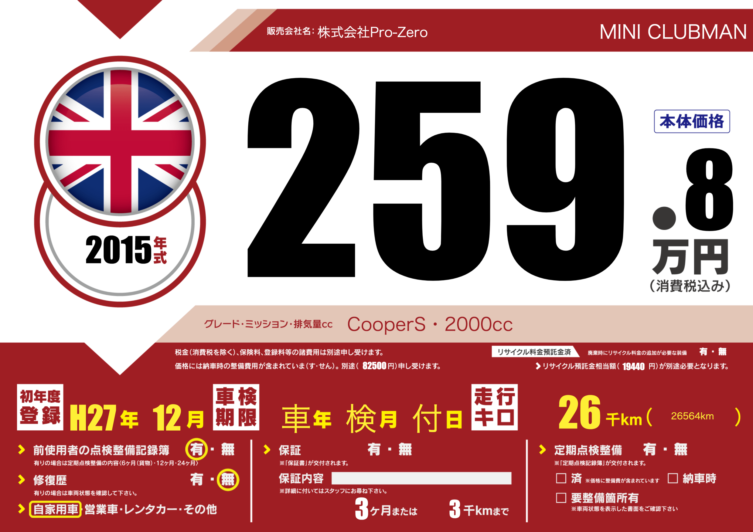 | 走行キロ | 2.6万km | ||