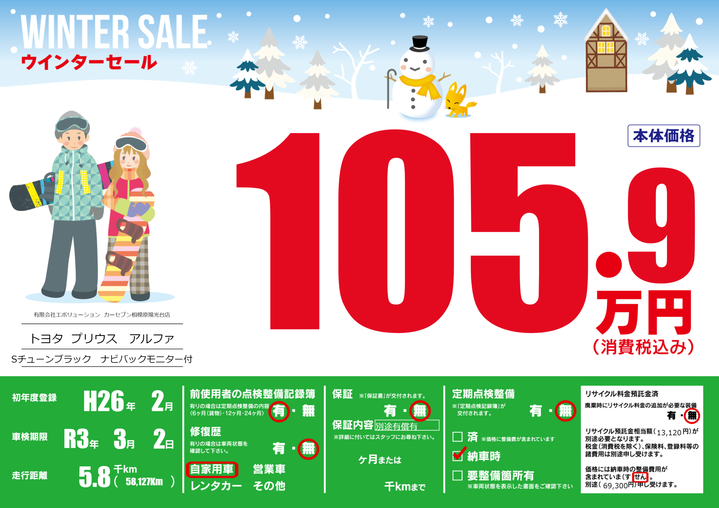 | 定期点検整備 | 定期点検整備なし 納車時あり | ||