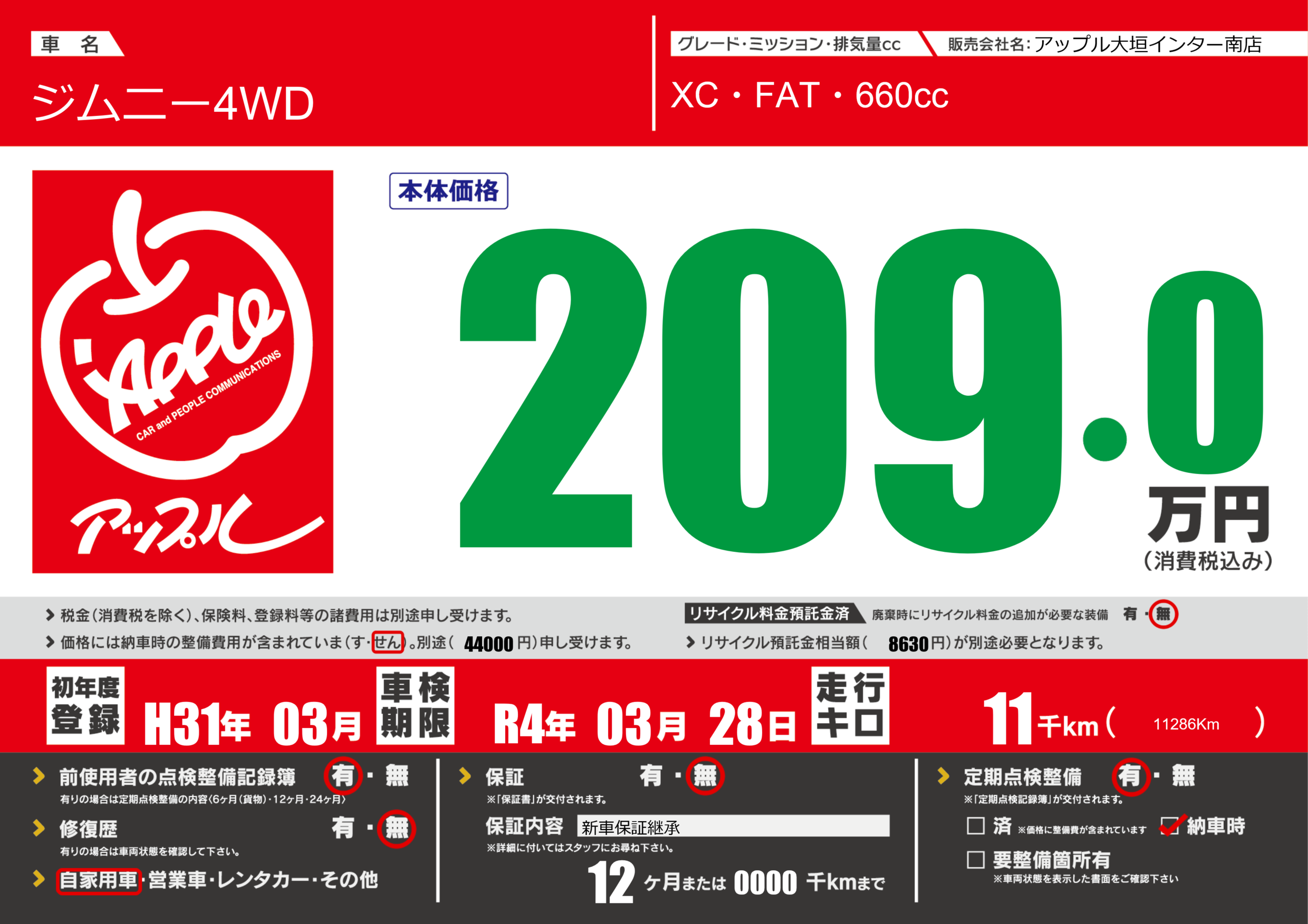 保証なし 保証内容(新車保証継承) 12ヶ月または(0000)千kmまで |