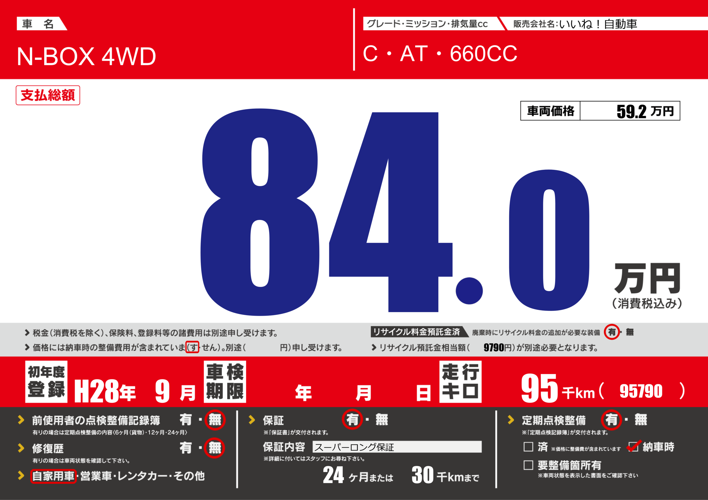 | 定期点検整備 | 定期点検整備あり 納車時あり | ||