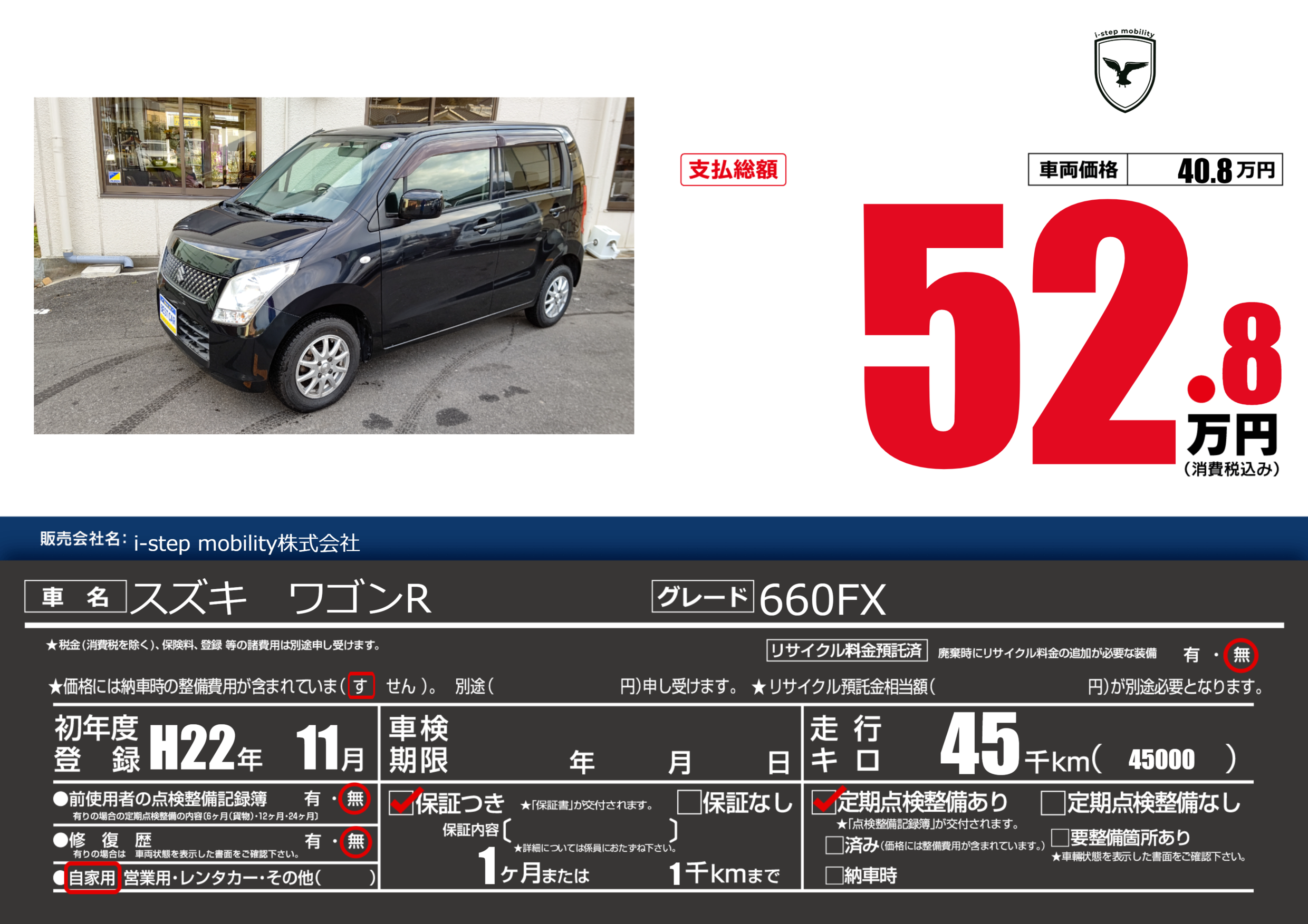 | 走行キロ | 4.5万km | 初年度登録 | H22年11月 |