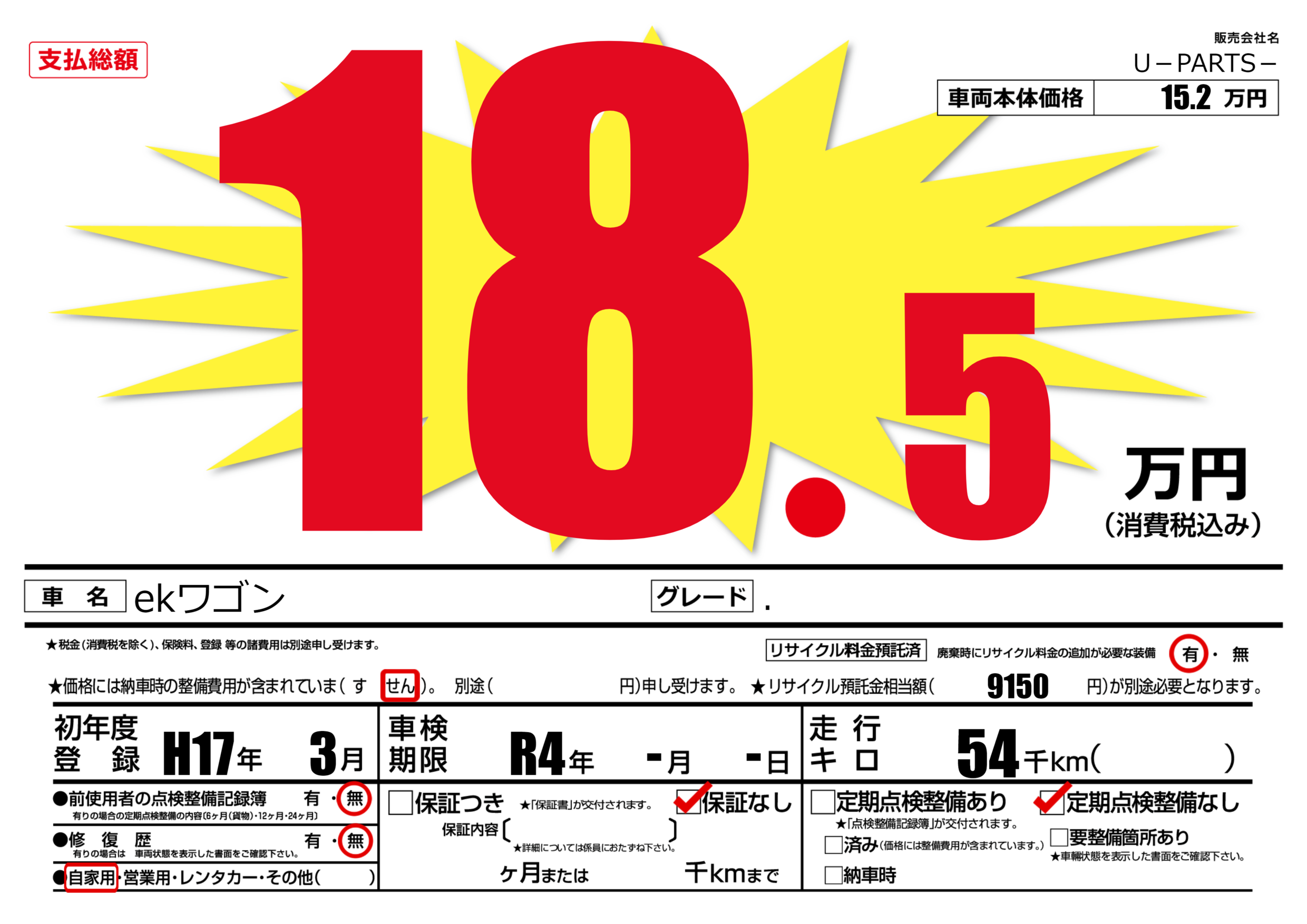 | 車名 | ekワゴン | グレード ミッション 排気量 |