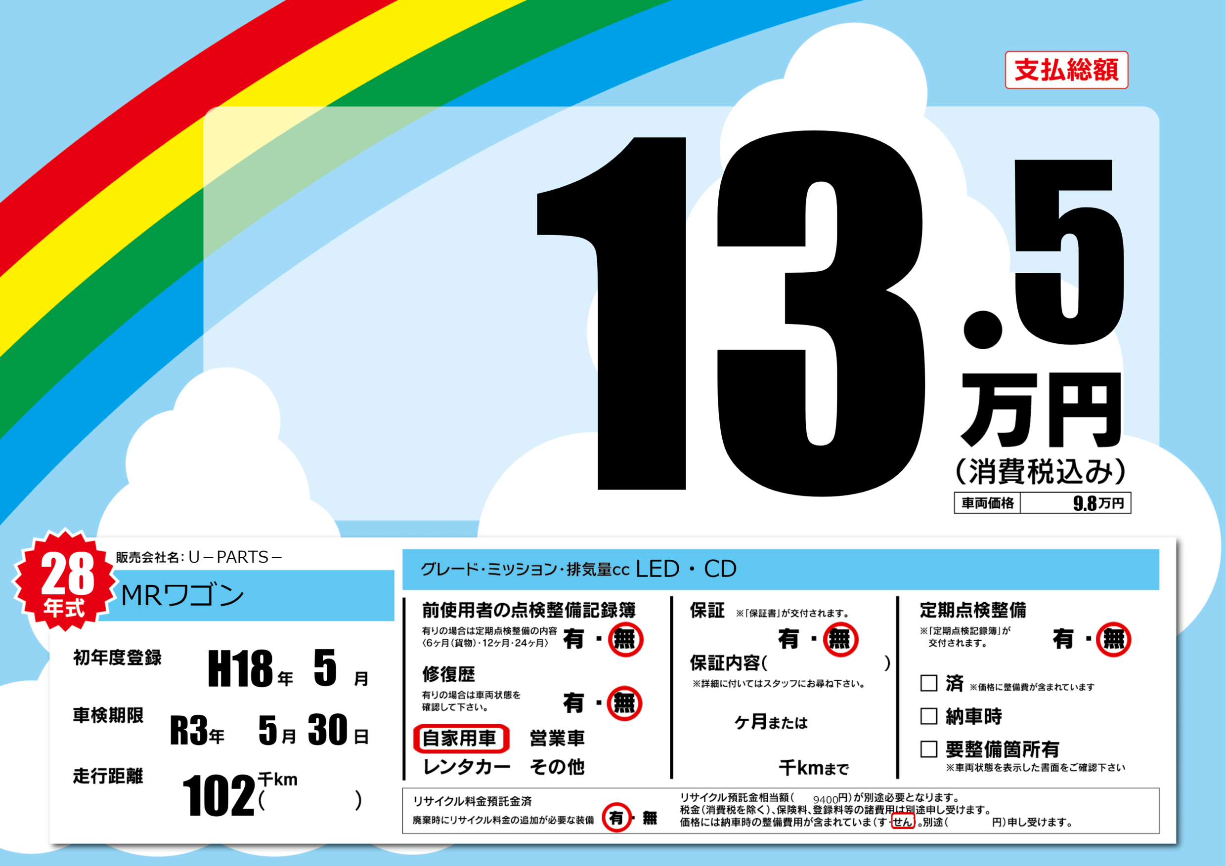 | 車名 | MRワゴン | グレード ミッション 排気量 |