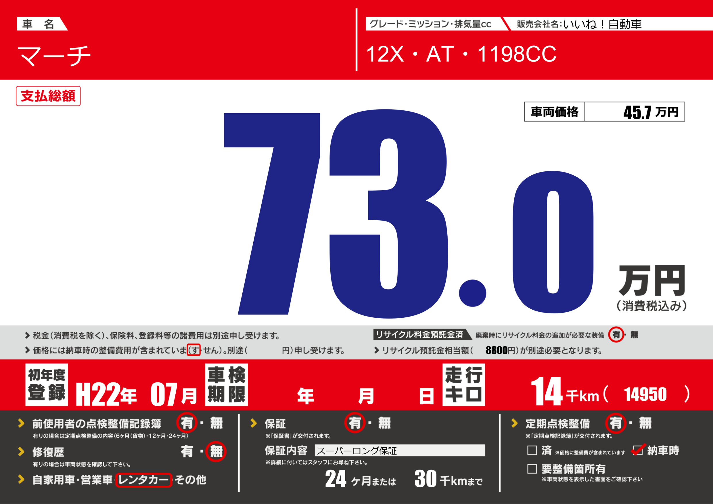 | 車名 | マーチ | グレード ミッション 排気量 |