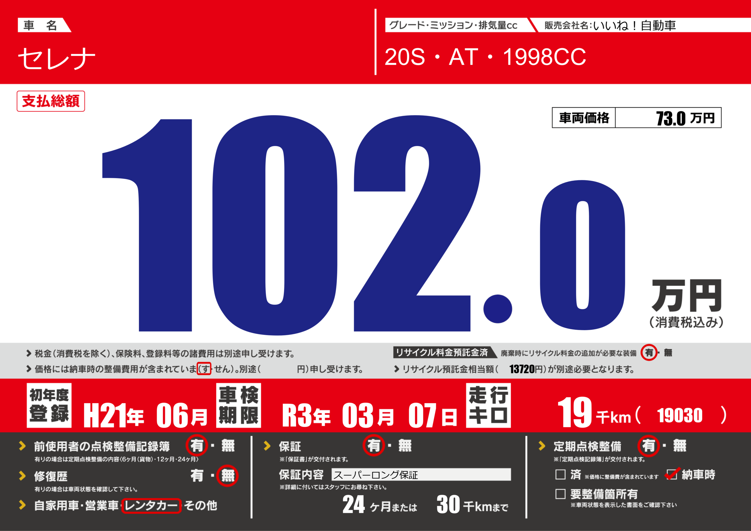 保証付き 保証内容(スーパーロング保証) 24ヶ月または(30)千kmまで |