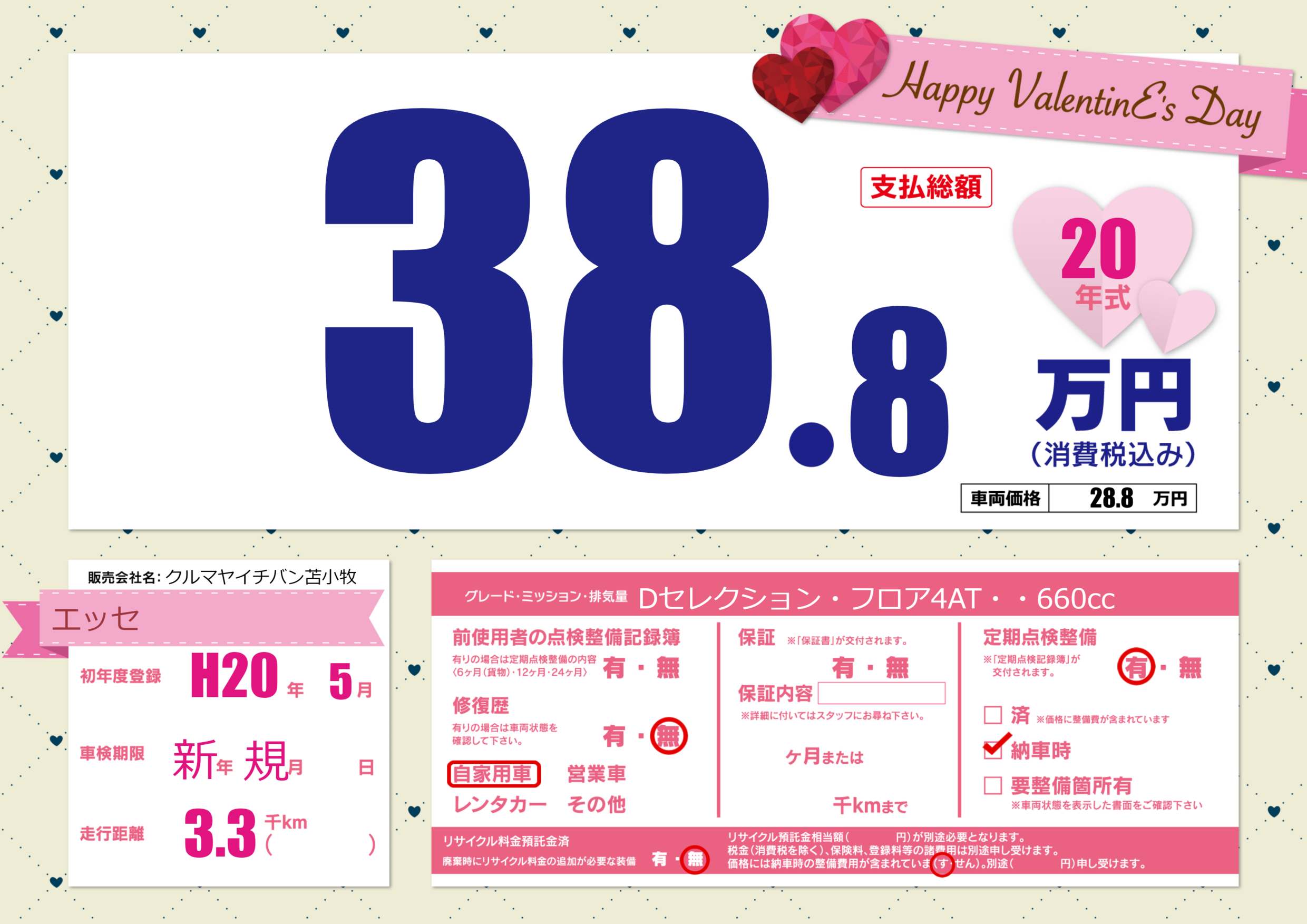 | 走行キロ | 0.3万km | 初年度登録 | H20年5月 |