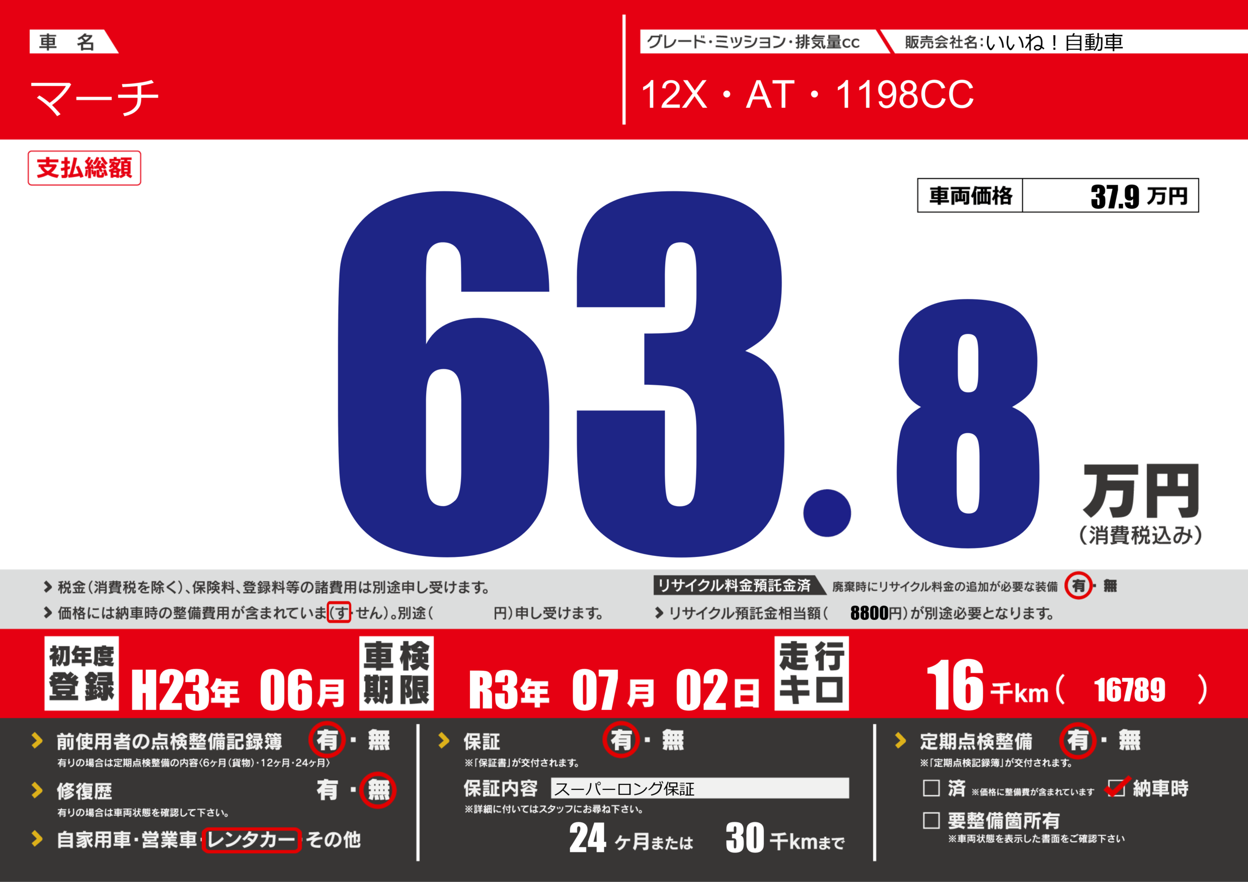 | 車名 | マーチ | グレード ミッション 排気量 |