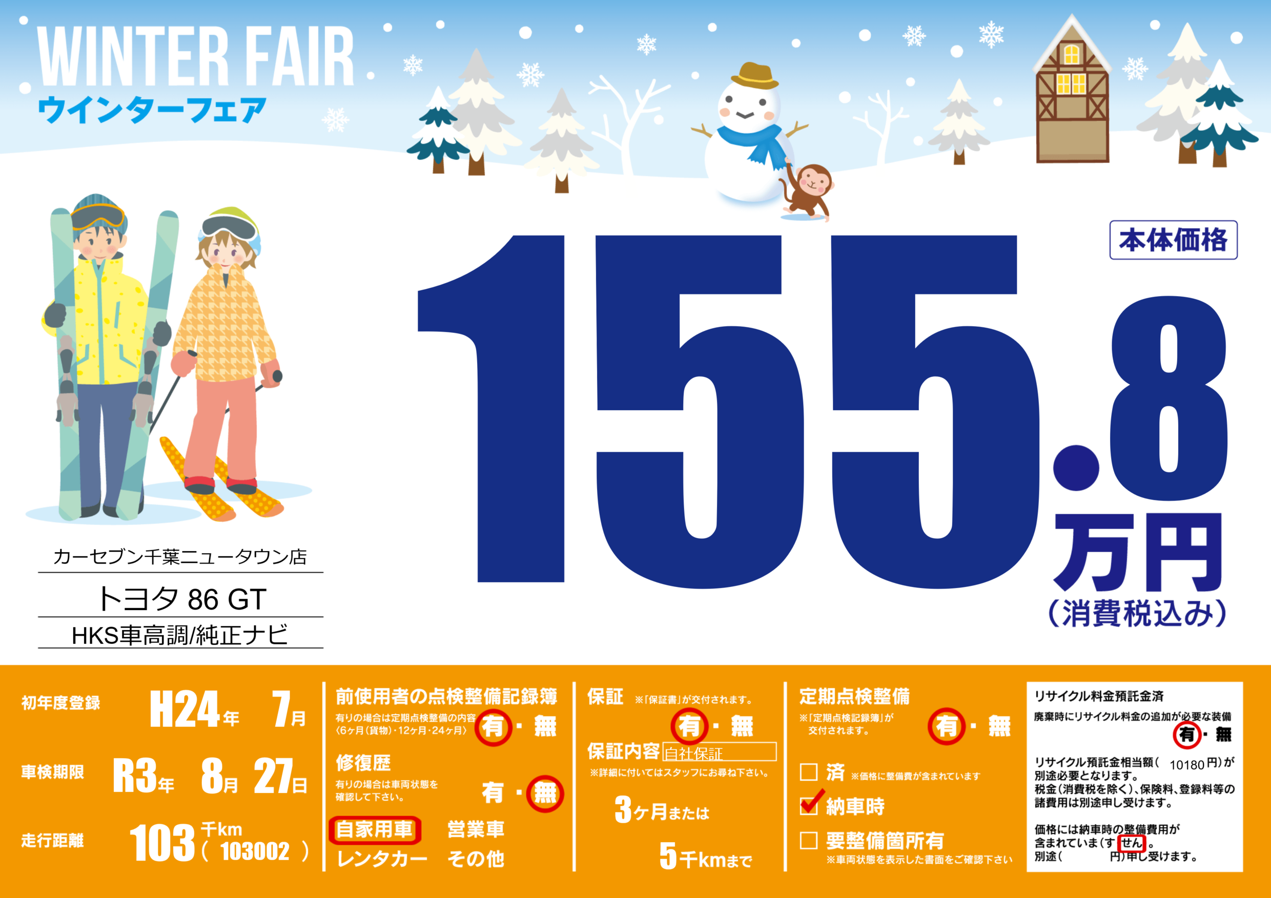 | 車名 | トヨタ 86 GT | グレード ミッション 排気量 |
