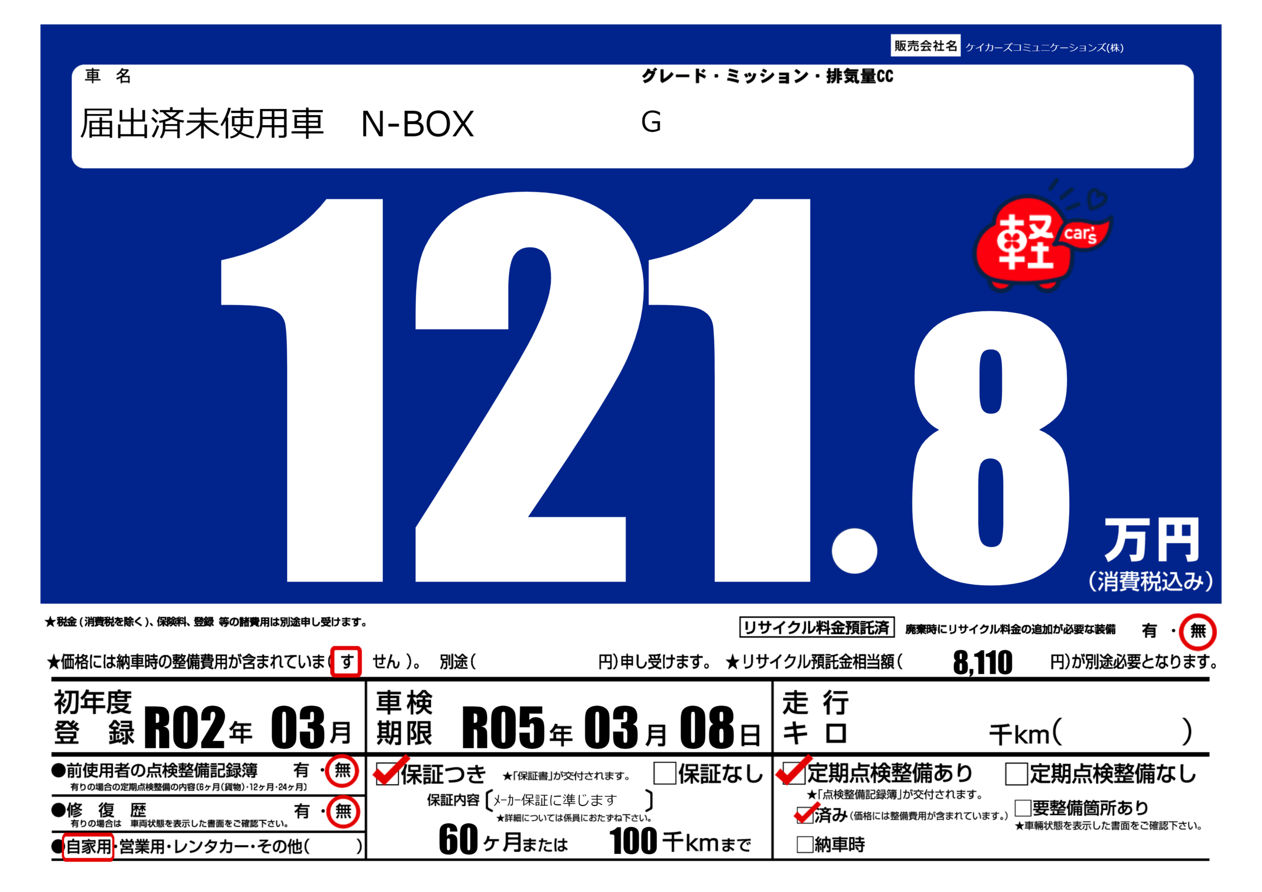 | 定期点検整備 | 定期点検整備あり 定期点検整備済み | ||