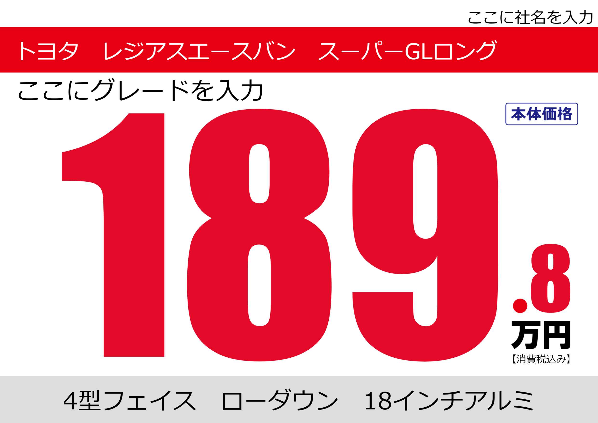 | 車名 | トヨタ レジアスエースバン スーパーGLロング | グレード ミッション 排気量 |