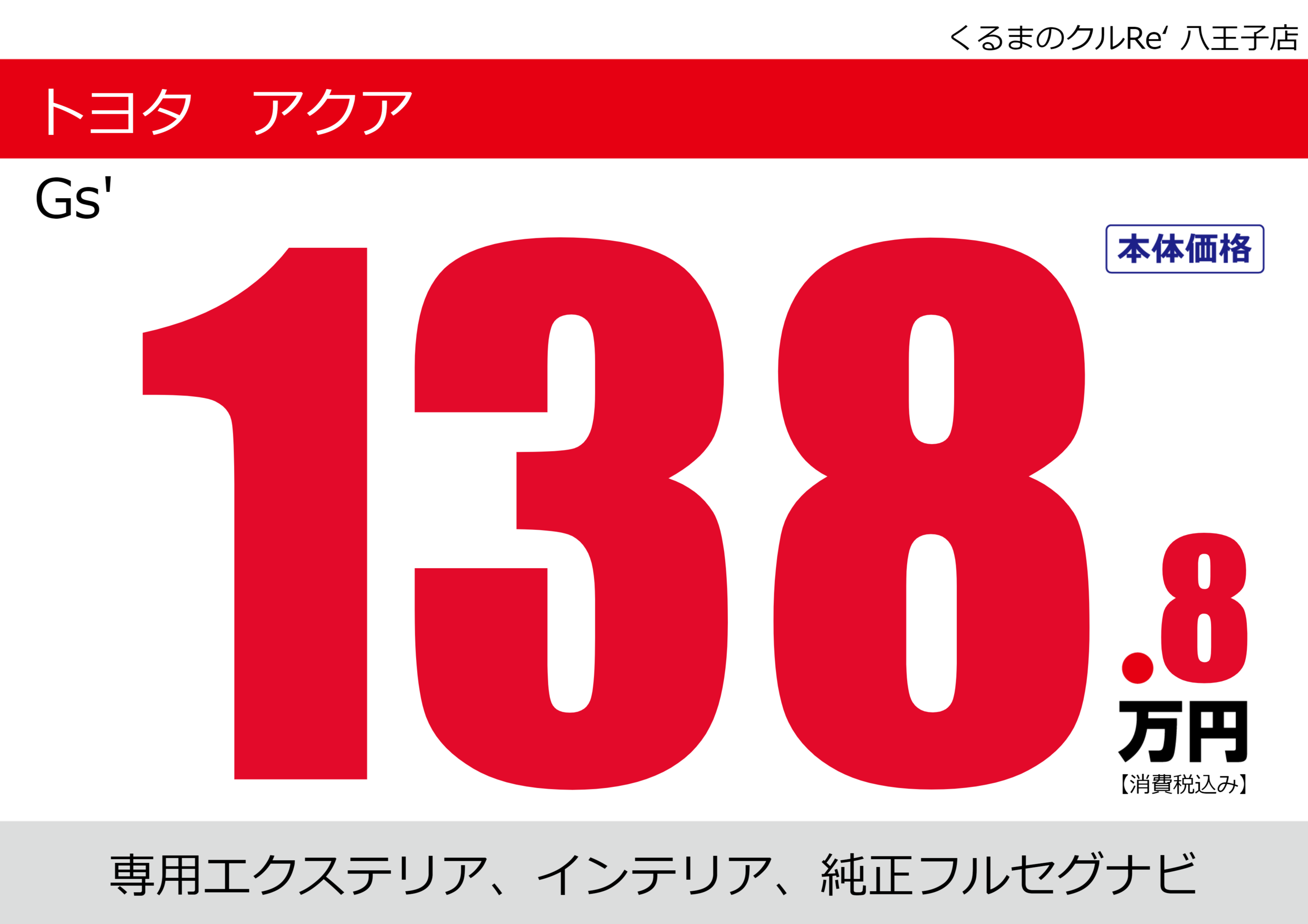 | 車名 | トヨタ アクア | グレード ミッション 排気量 |