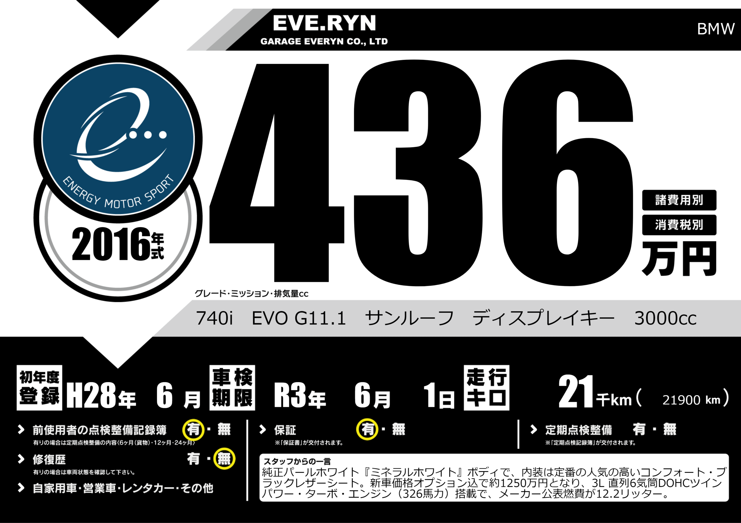 740i EVO G11.1 サンルーフ ディスプレイキー 3000cc |