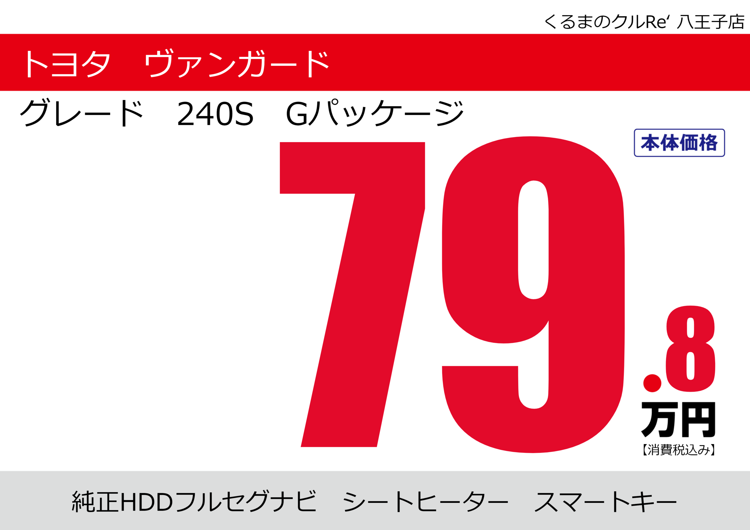 | 車名 | トヨタ ヴァンガード | グレード ミッション 排気量 |