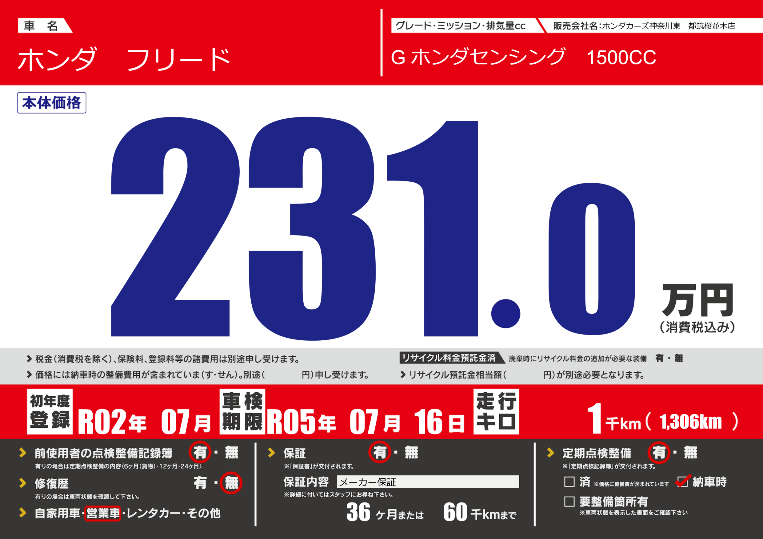 | 車検制限 | R05年 07月 16日 | ||