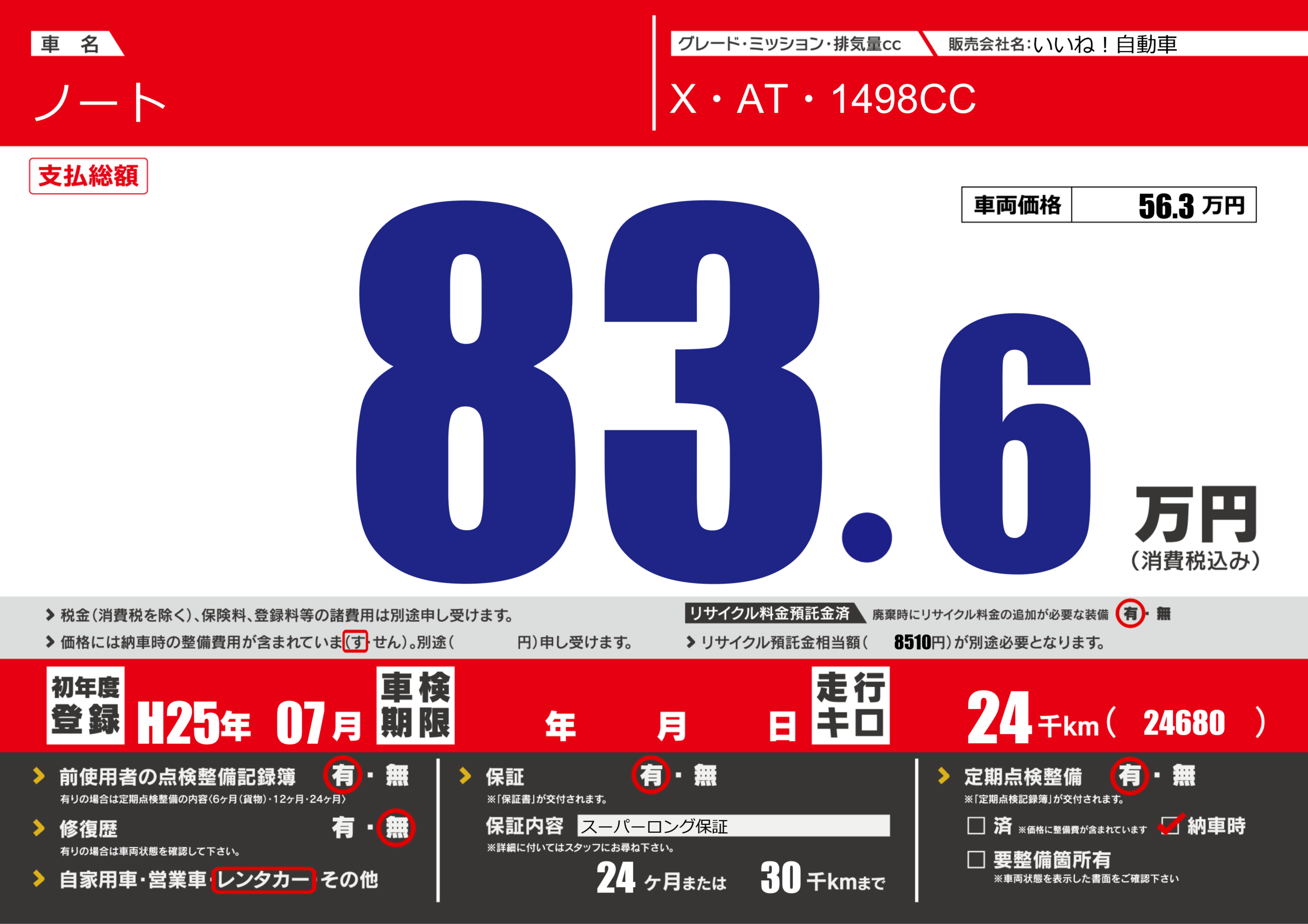 保証付き 保証内容(スーパーロング保証) 24ヶ月または(30)千kmまで |