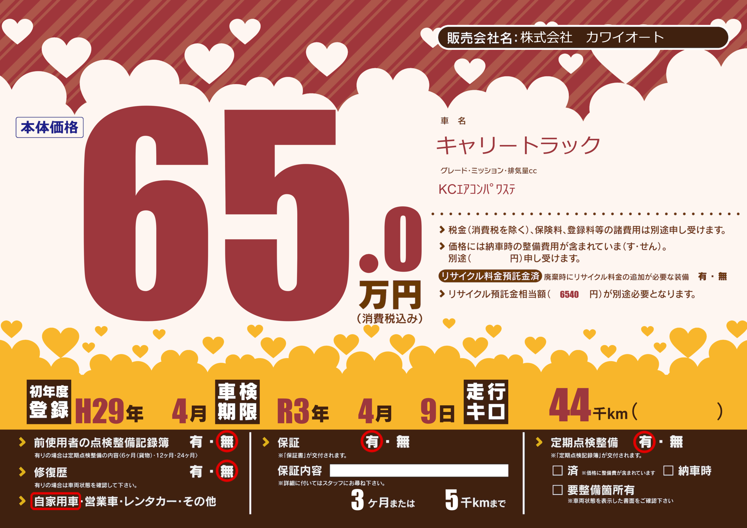 | 車名 | キャリートラック | グレード ミッション 排気量 |