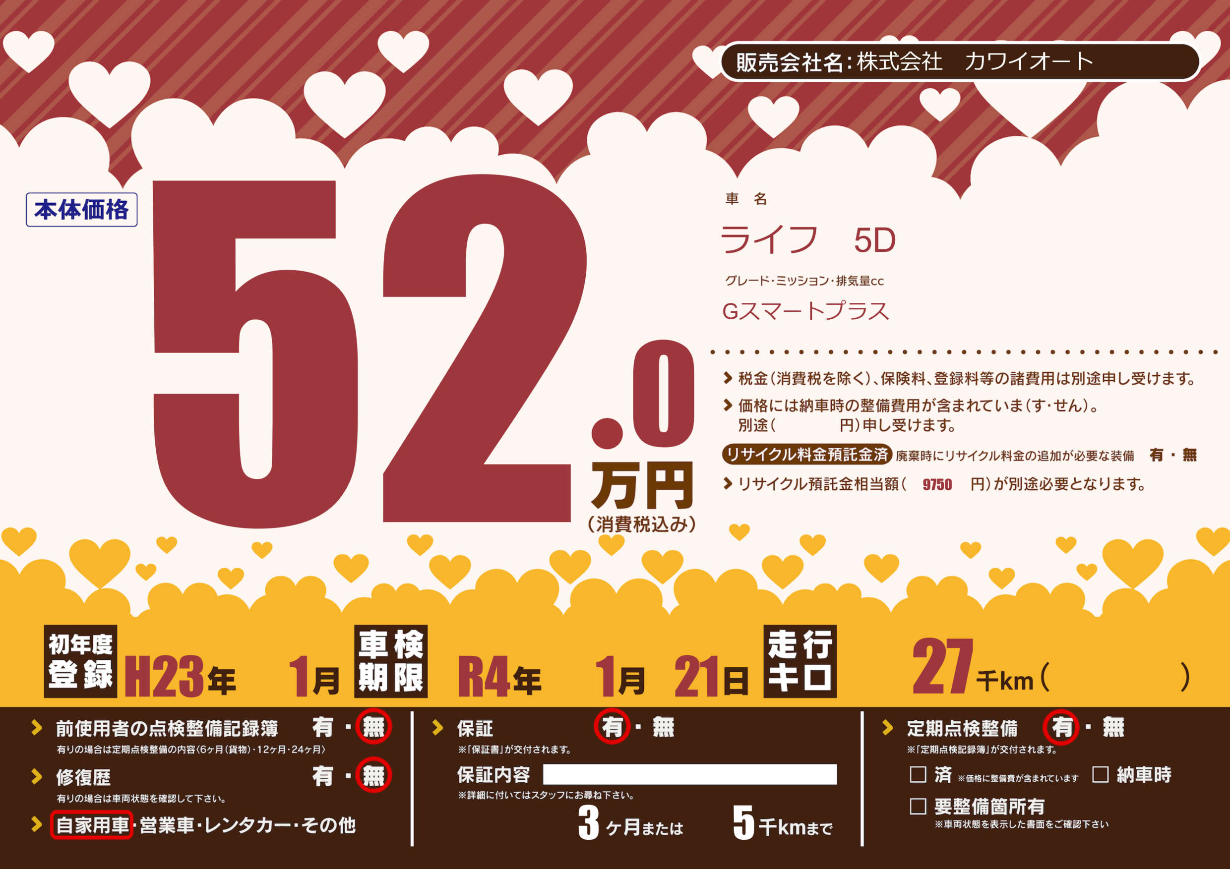 | 車名 | ライフ 5D | グレード ミッション 排気量 |