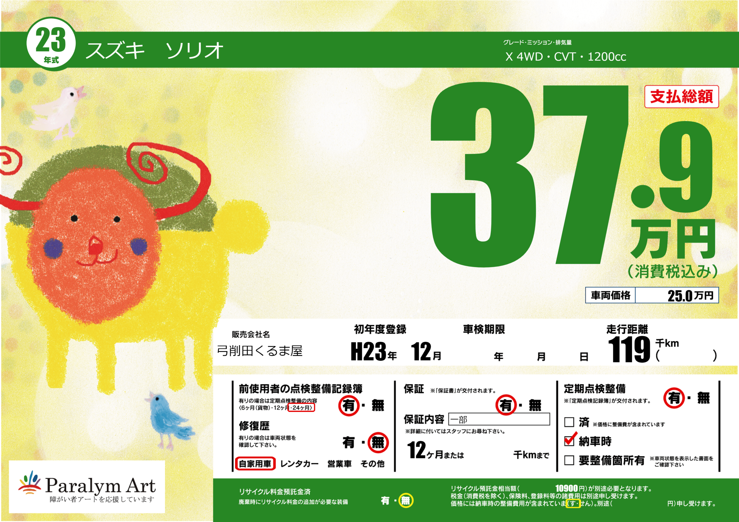 | 走行キロ | 11.9万km | 初年度登録 | H23年12月 |