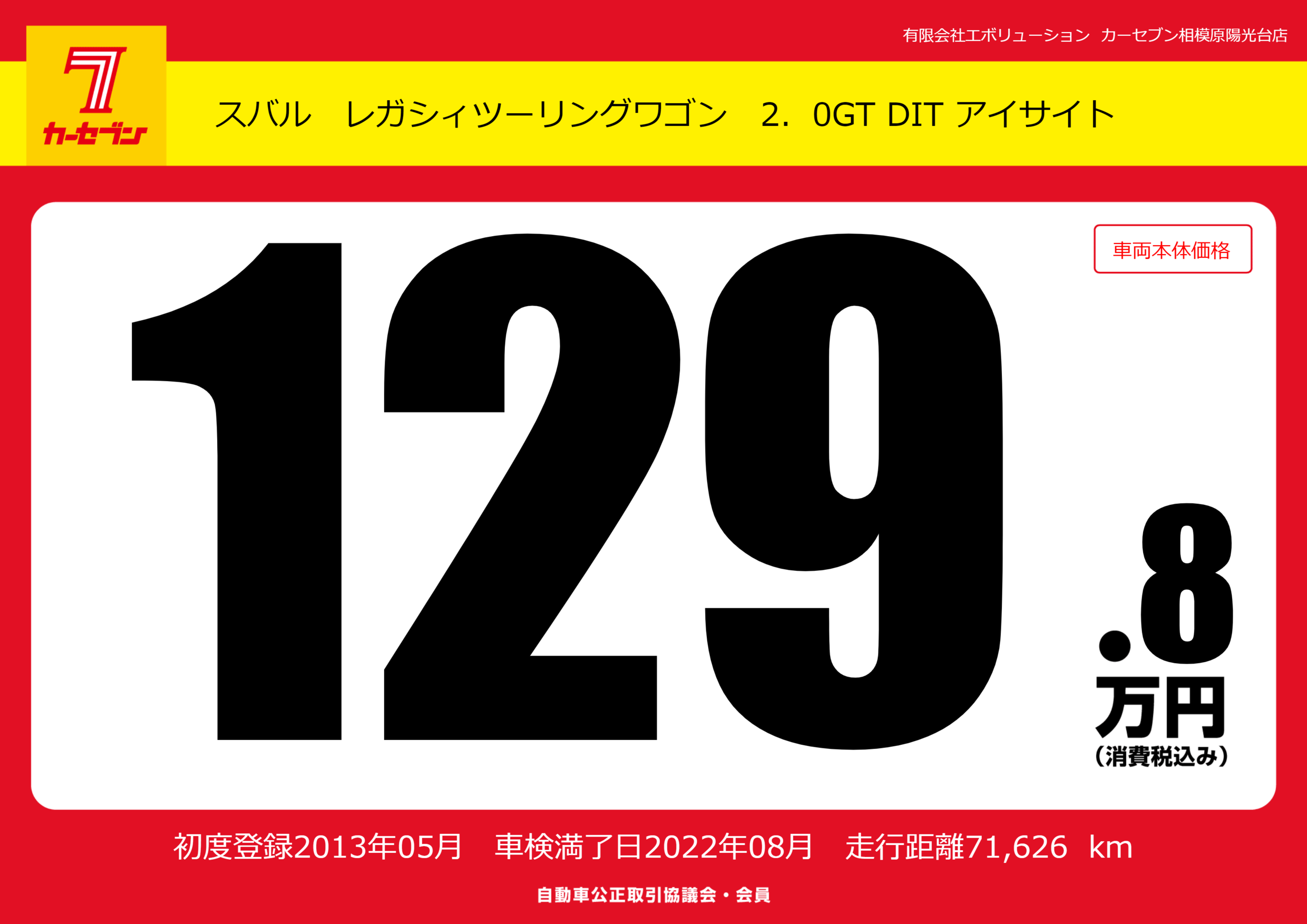 | 車名 | スバル レガシィツーリングワゴン 2.0GT DIT アイサイト | グレード ミッション 排気量 |