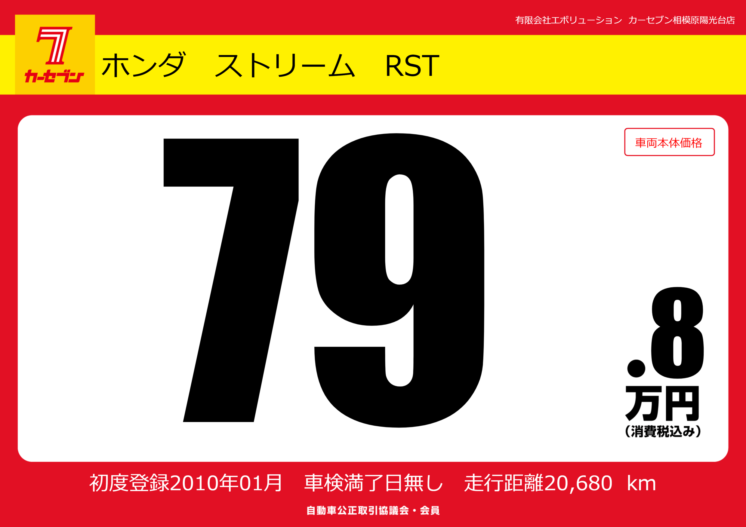 | 車名 | ホンダ ストリーム RST | グレード ミッション 排気量 |