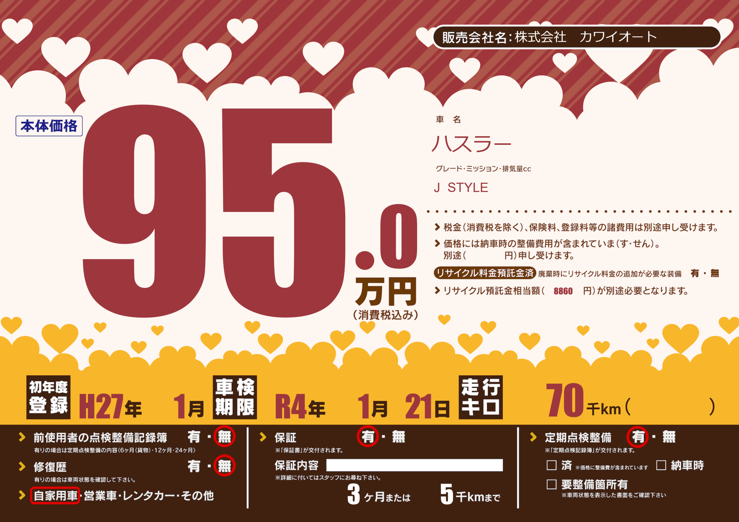 | 車名 | ハスラー | グレード ミッション 排気量 |