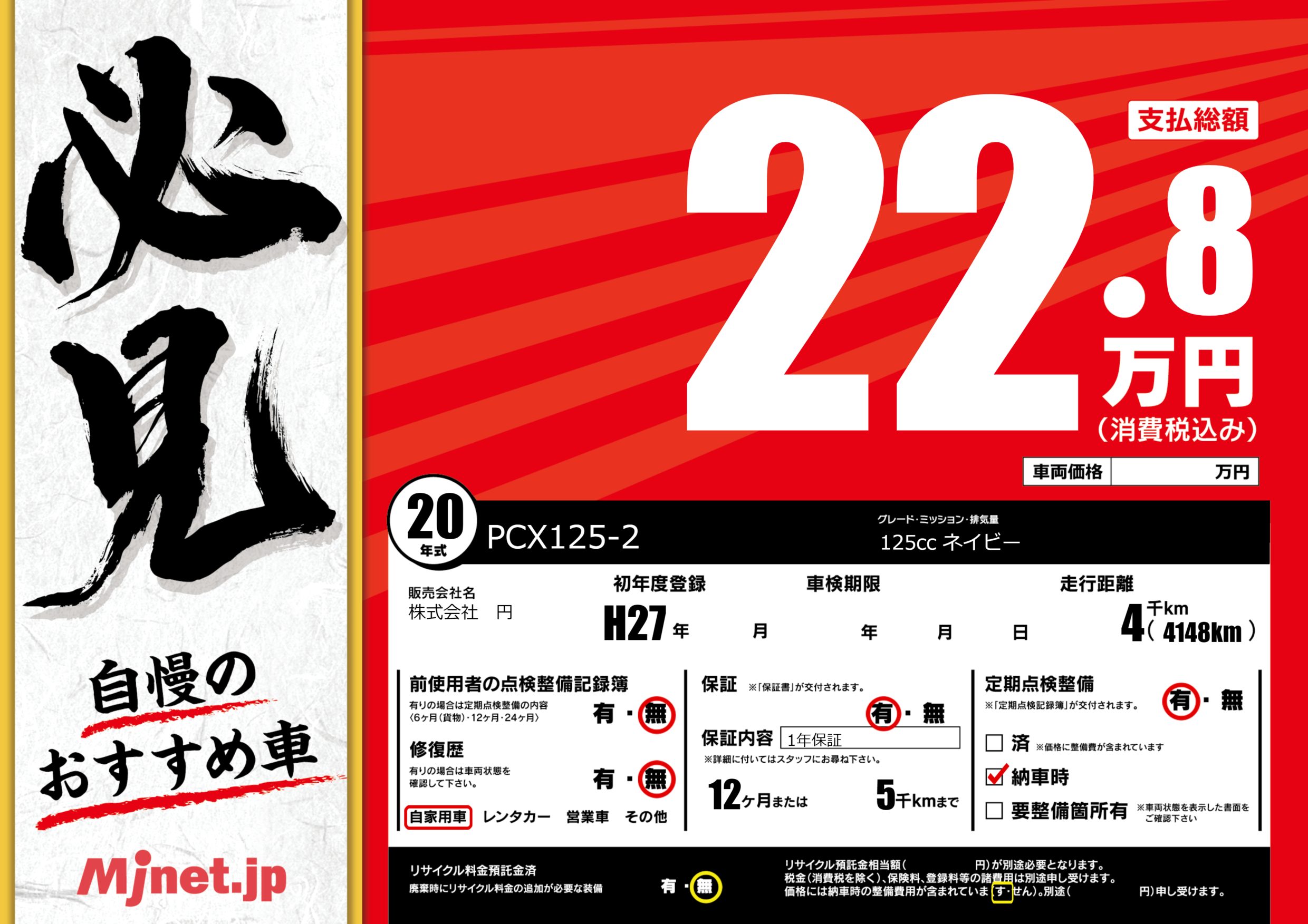 保証付き 保証内容(1年保証) 12ヶ月または(5)千kmまで |