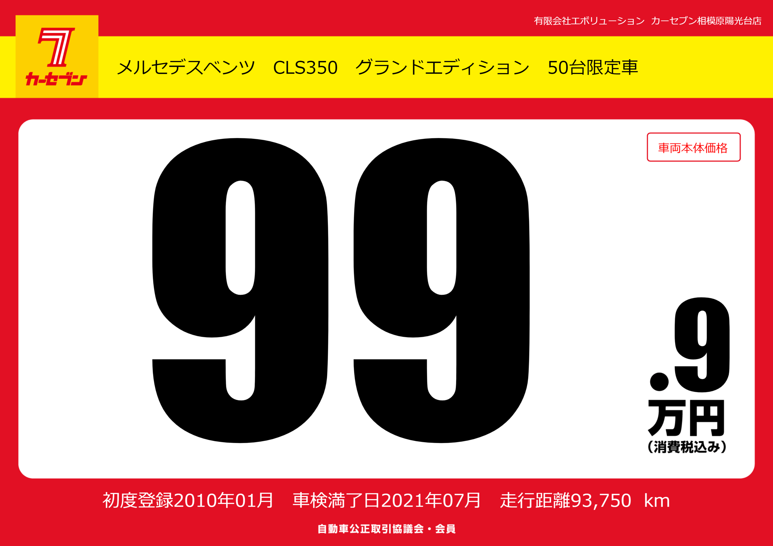 | 車名 | メルセデスベンツ CLS350 グランドエディション 50台限定車 | グレード ミッション 排気量 |