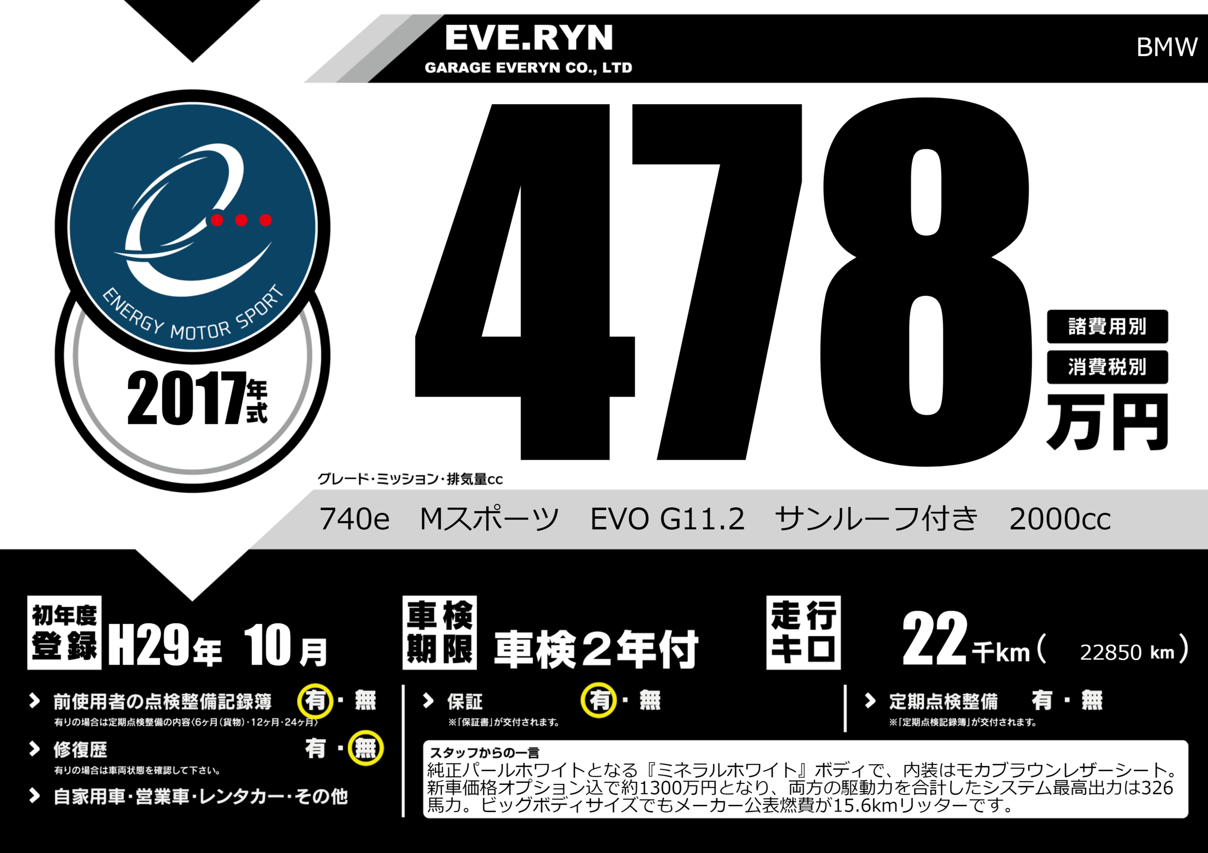 740e Mスポーツ EVO G11.2 サンルーフ付き 2000cc |