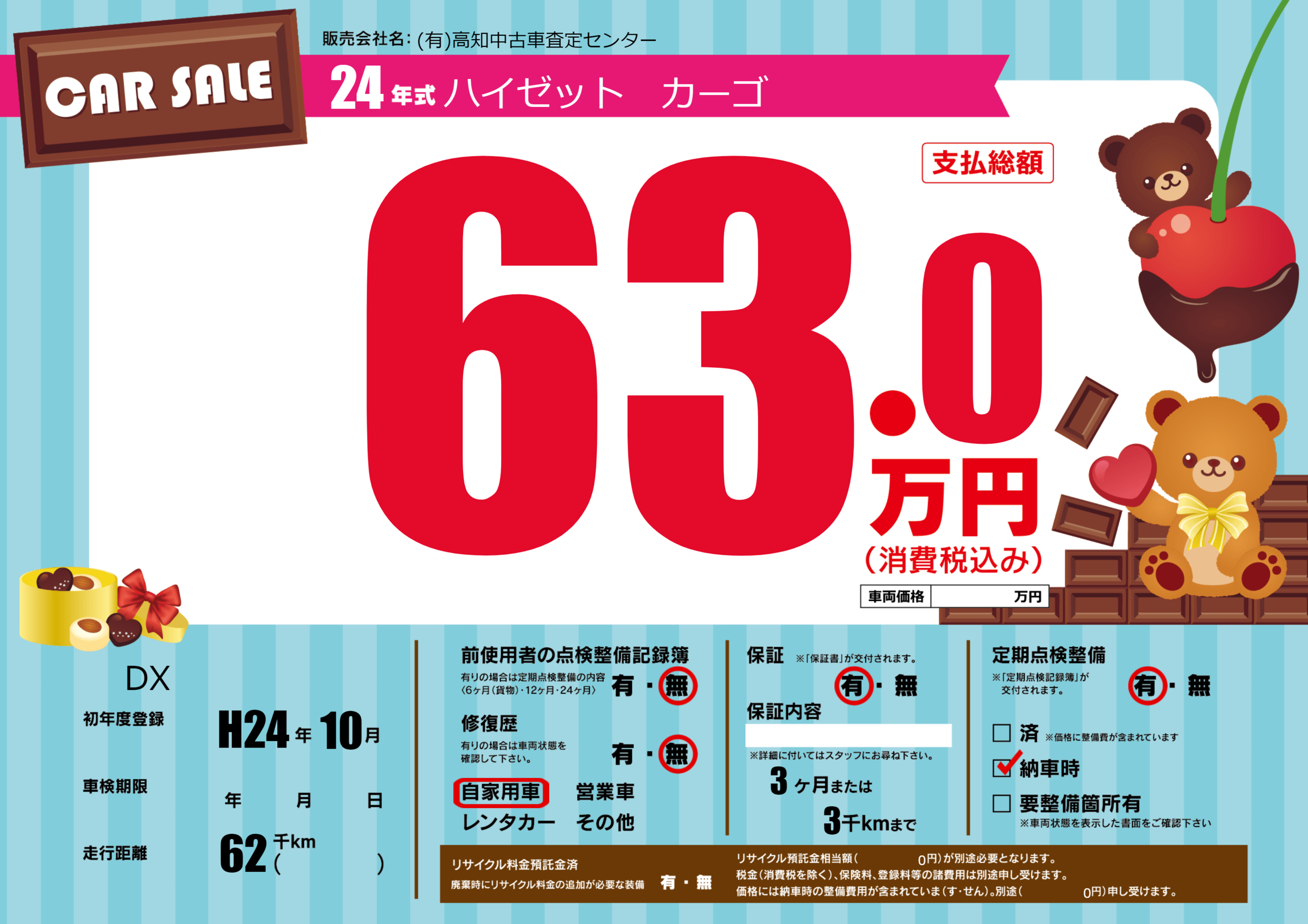| 定期点検整備 | 定期点検整備あり 納車時あり | ||