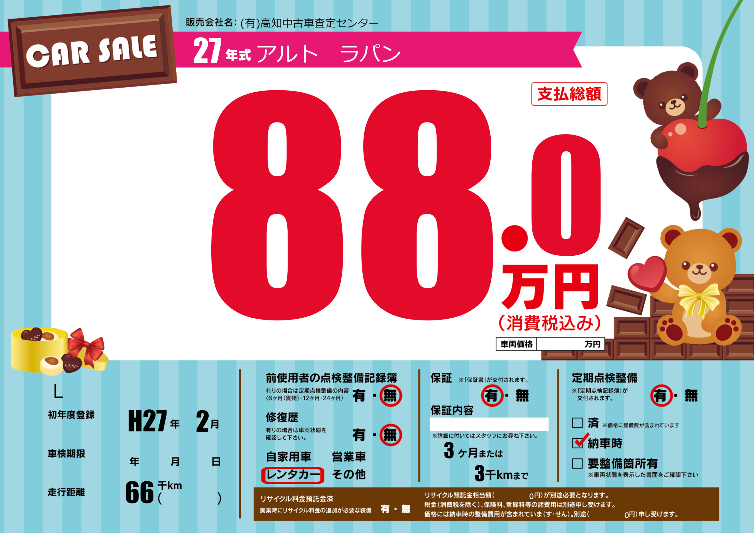 | 定期点検整備 | 定期点検整備あり 納車時あり | ||