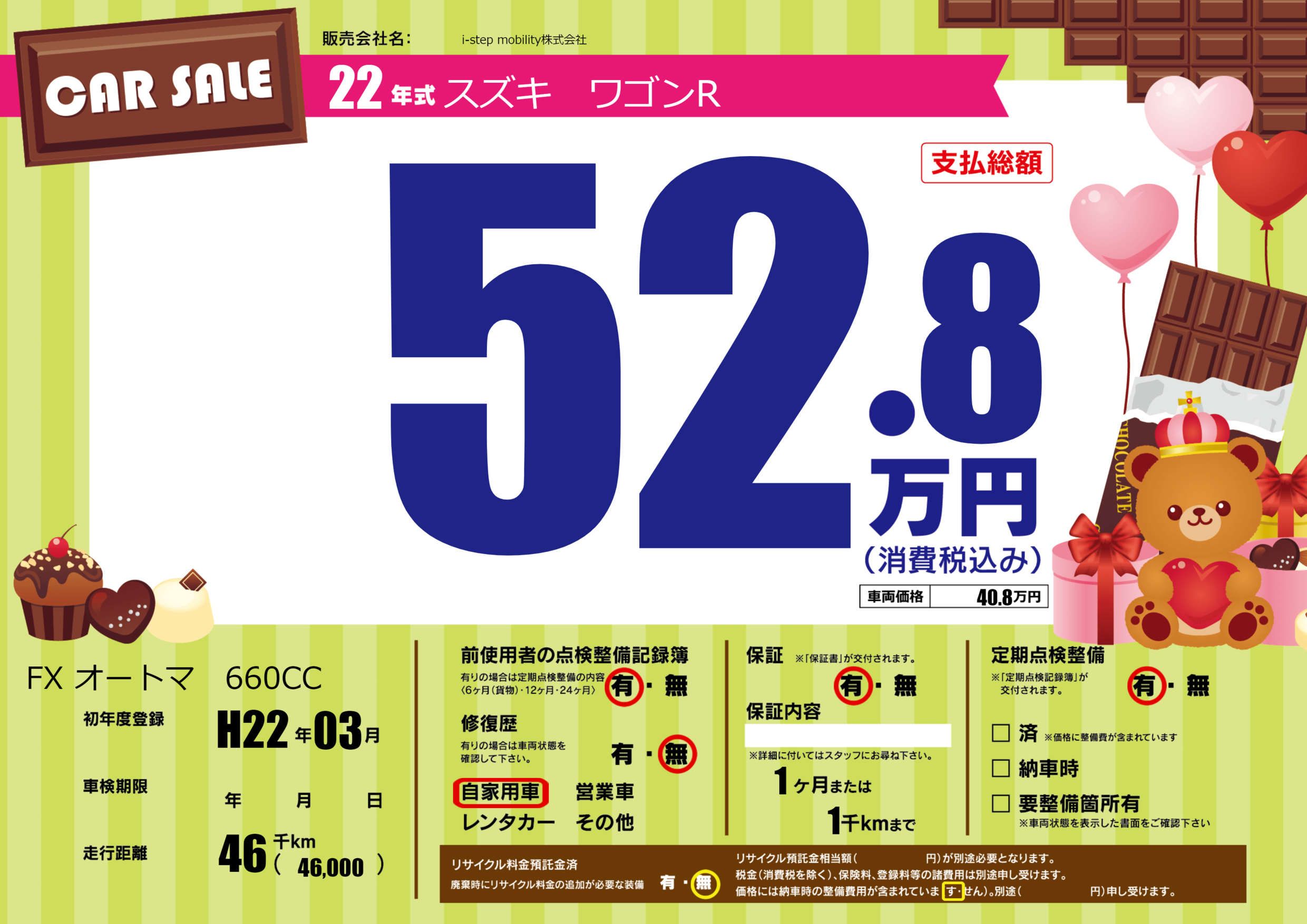 | 車検制限 | - 年 - 月 - 日 | ||