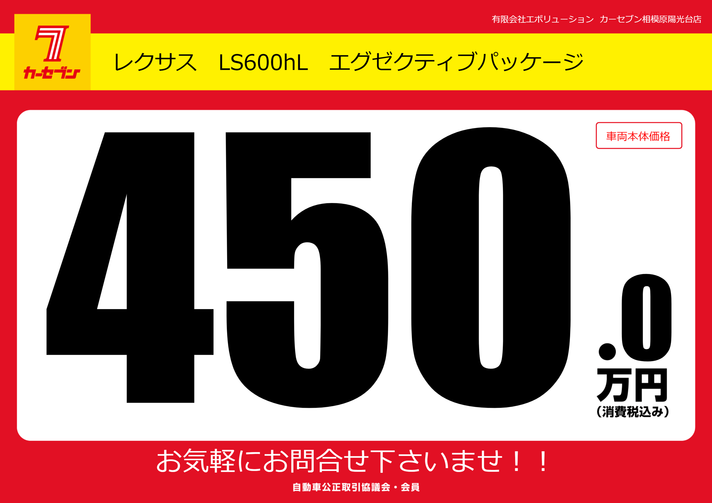 | 車名 | レクサス LS600hL エグゼクティブパッケージ | グレード ミッション 排気量 |