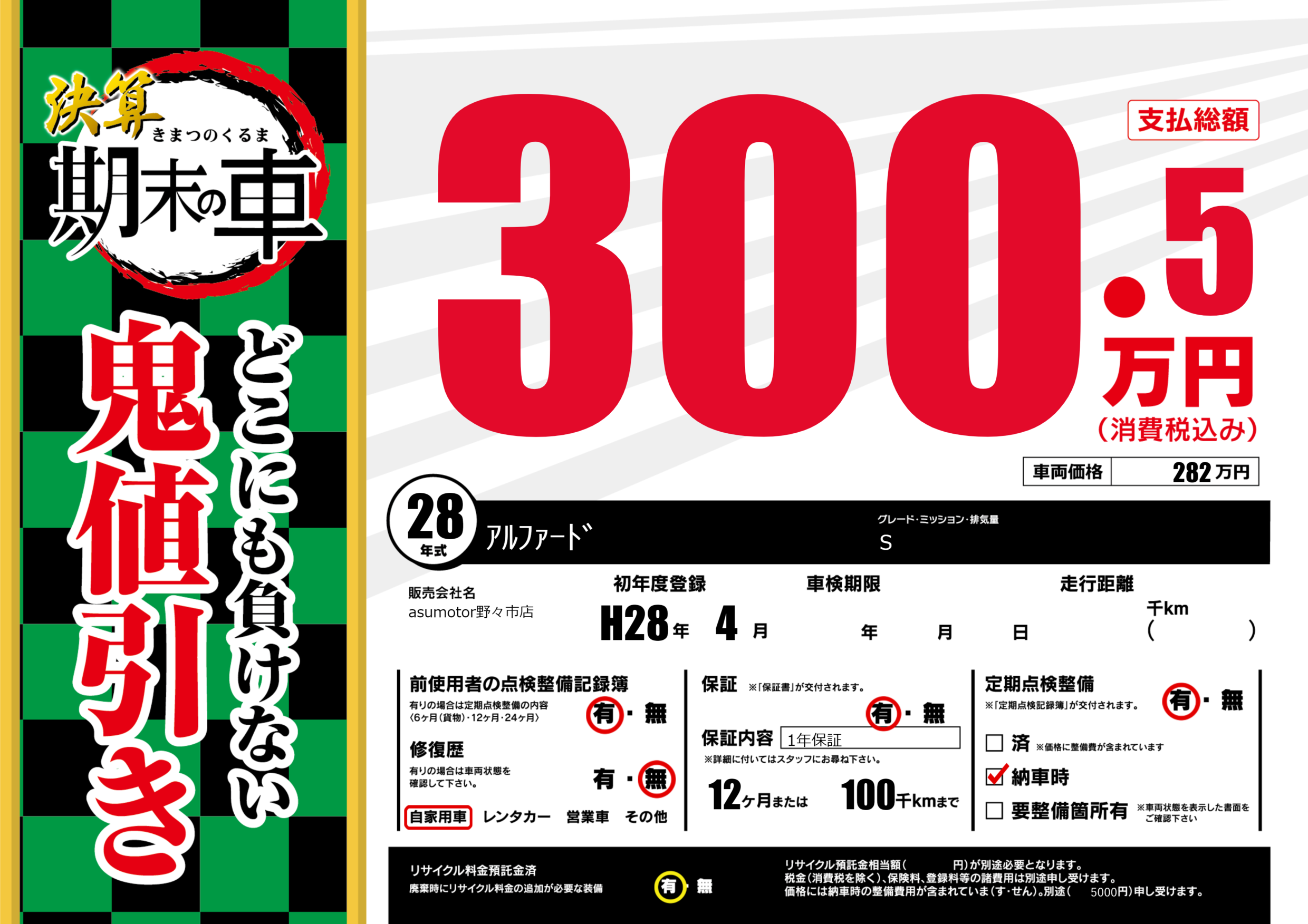 | 定期点検整備 | 定期点検整備あり 納車時あり | ||