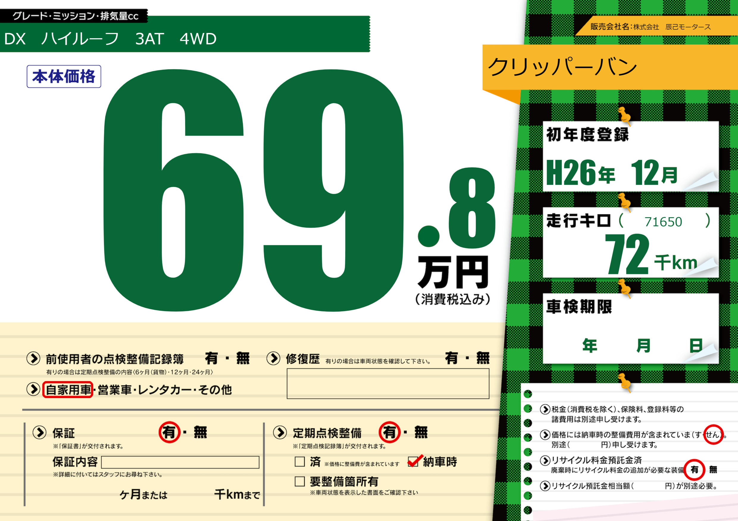 | 定期点検整備 | 定期点検整備あり 納車時あり | ||