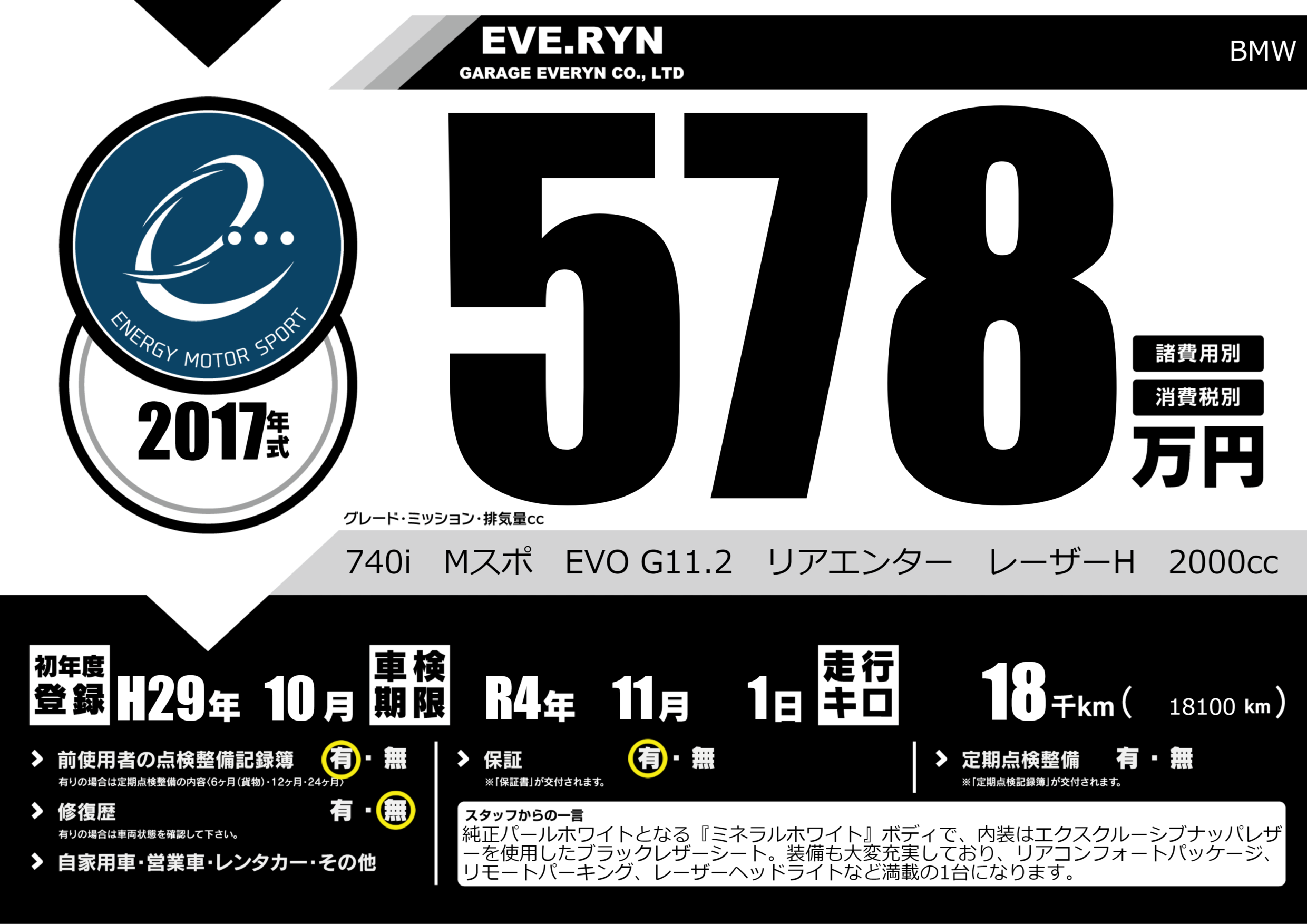 740i Mスポ EVO G11.2 リアエンター レーザーH 2000cc |