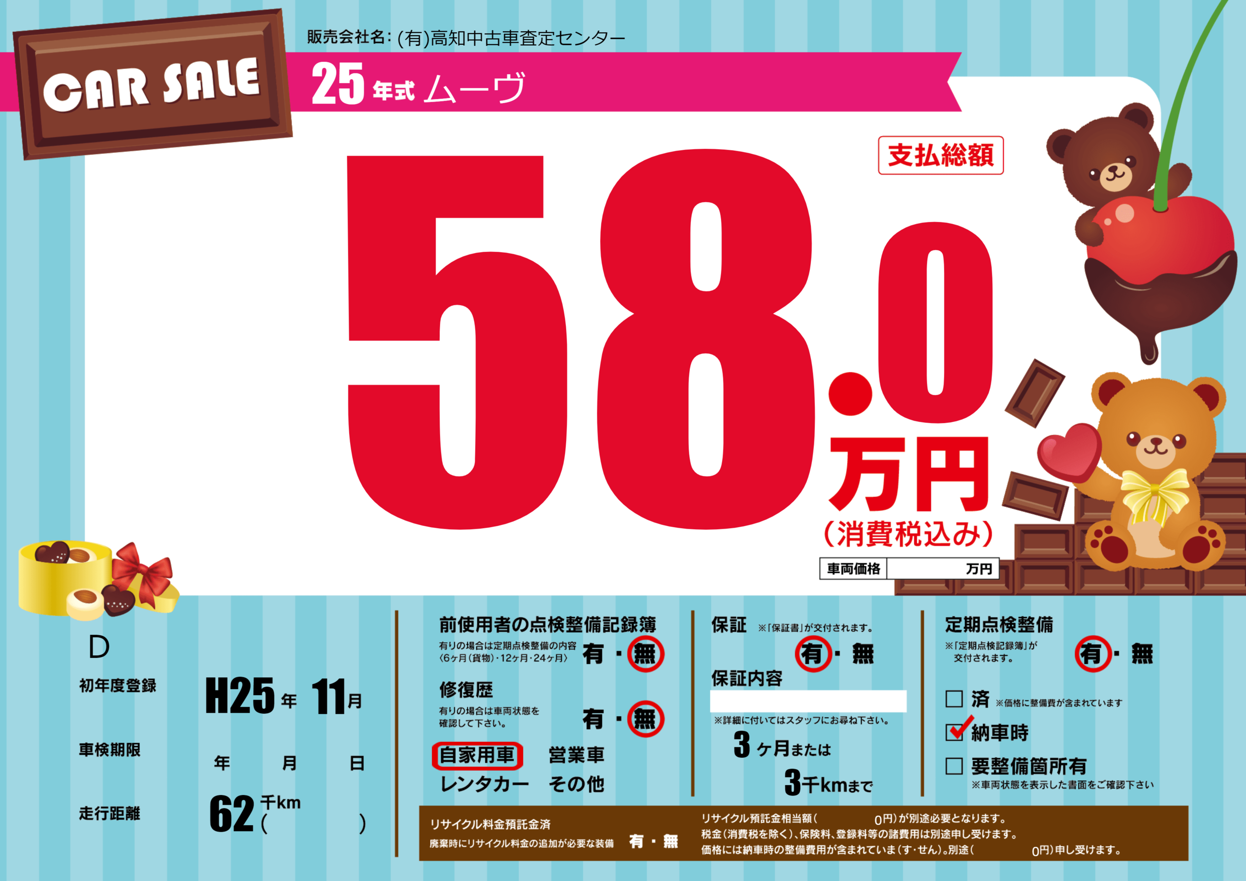 | 定期点検整備 | 定期点検整備あり 納車時あり | ||