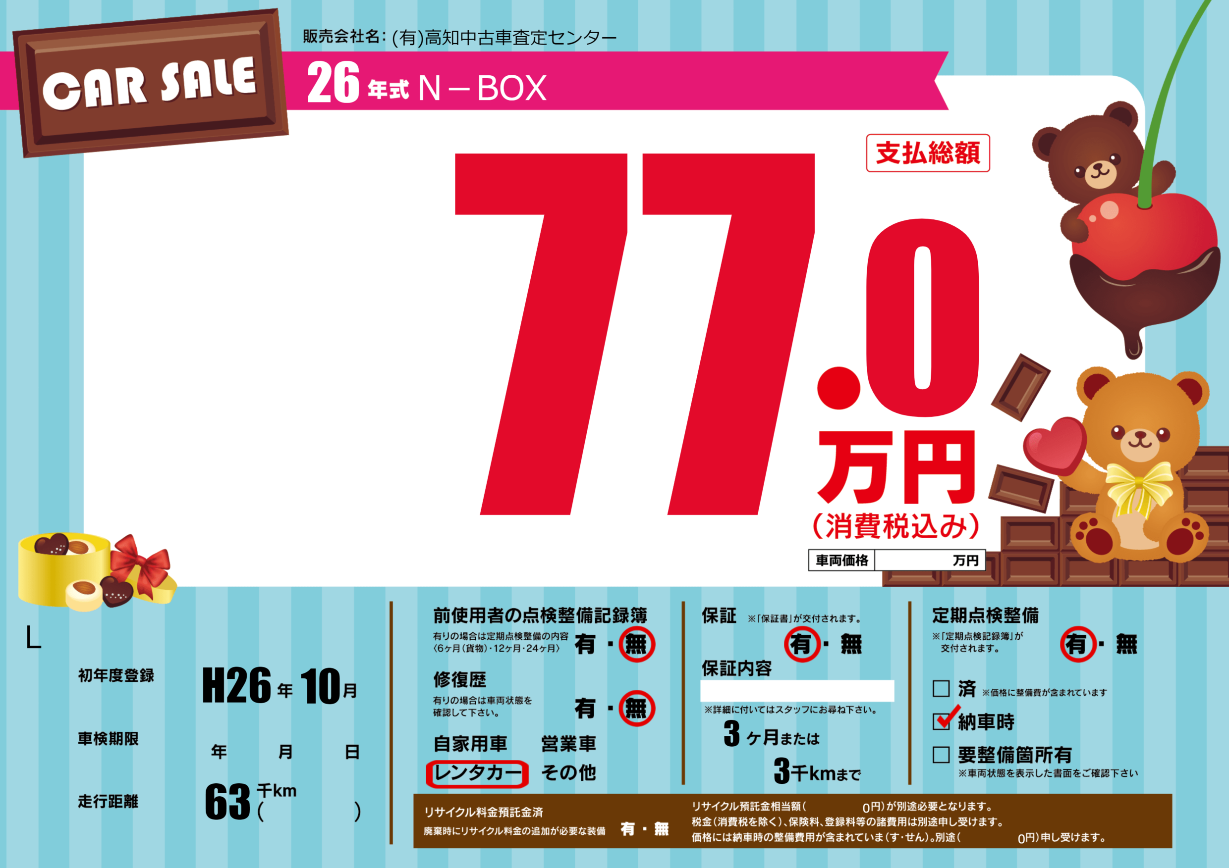 | 定期点検整備 | 定期点検整備あり 納車時あり | ||