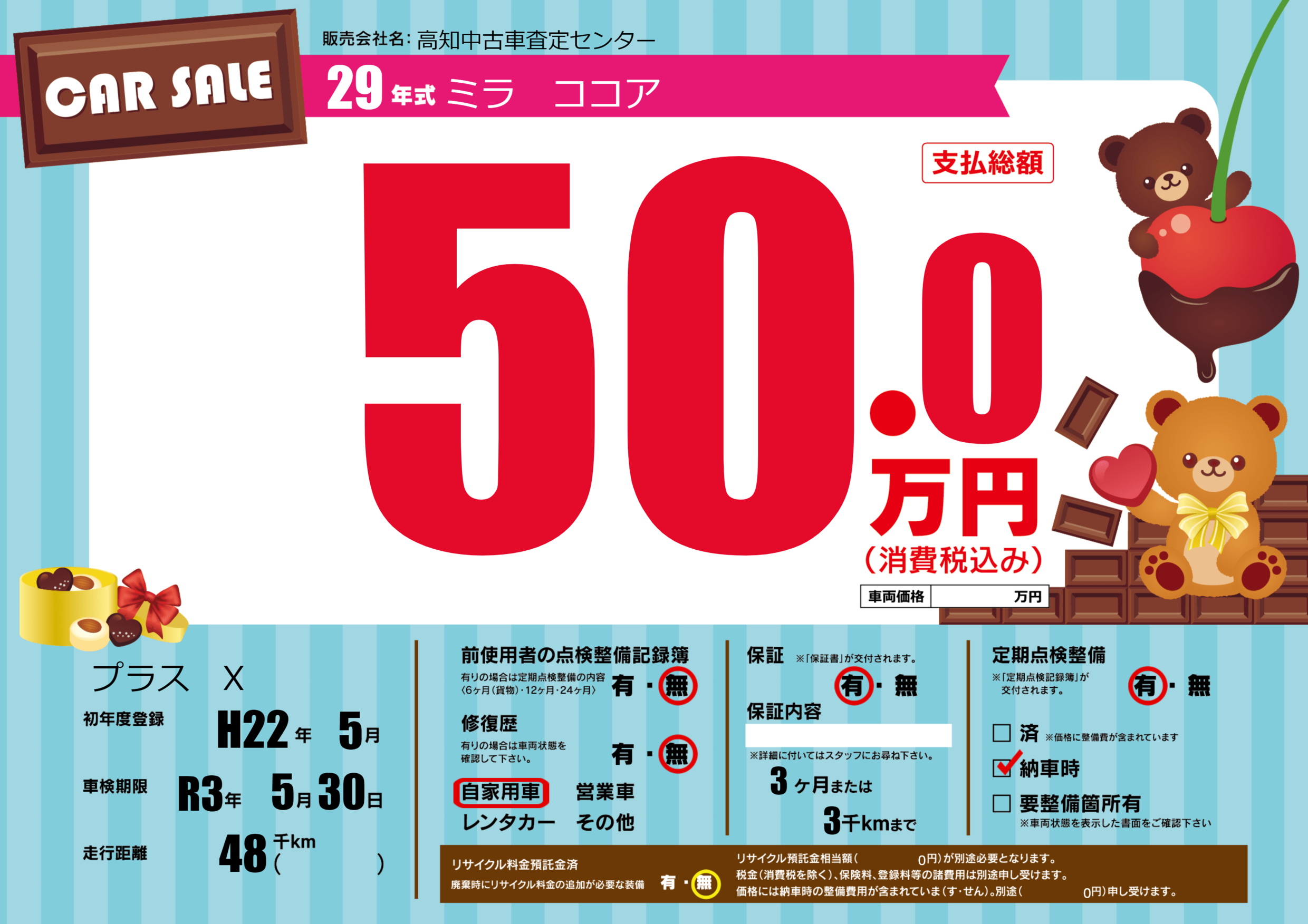 | 走行キロ | 4.8万km | 初年度登録 | H22年5月 |