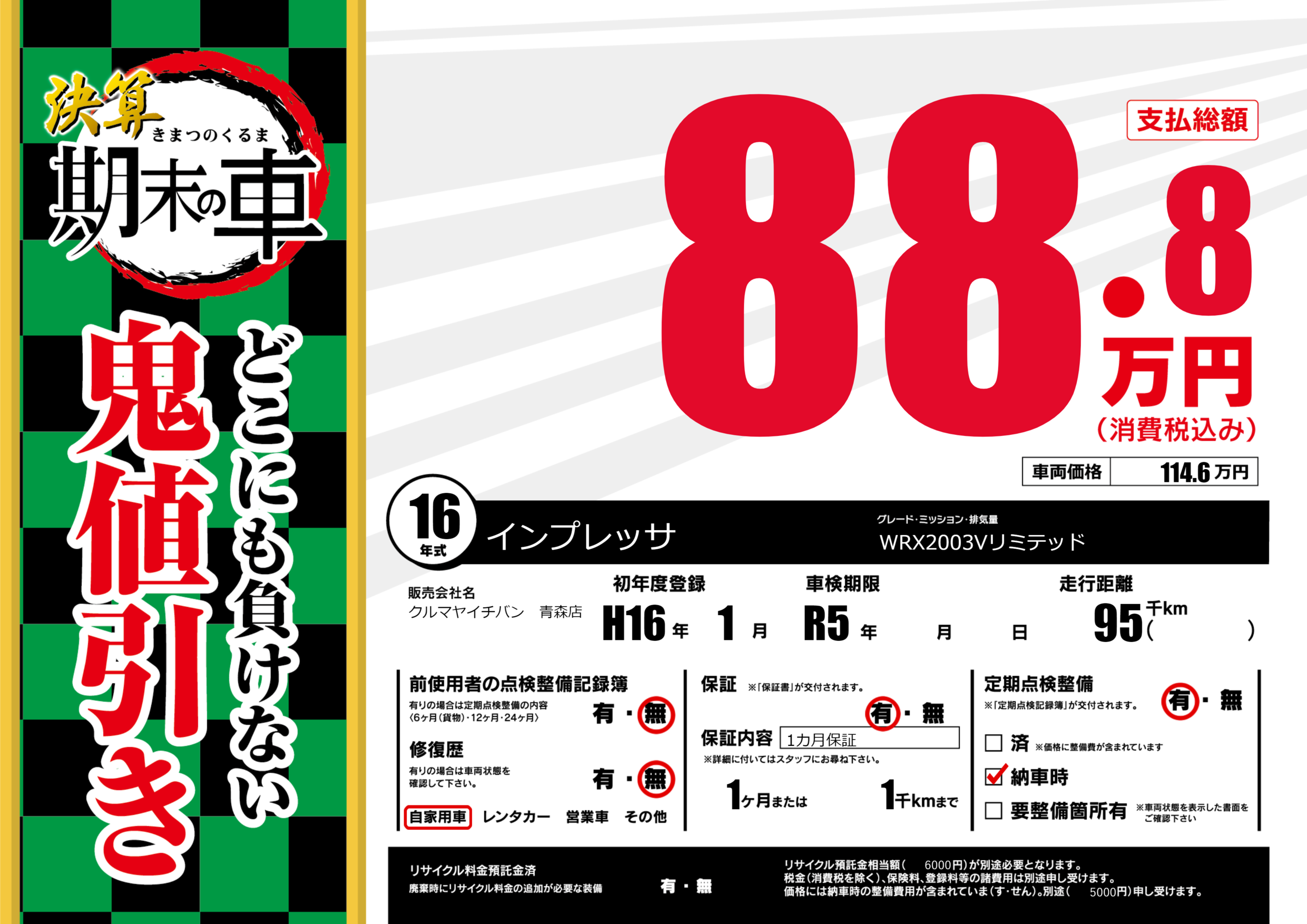 | 定期点検整備 | 定期点検整備あり 納車時あり | ||