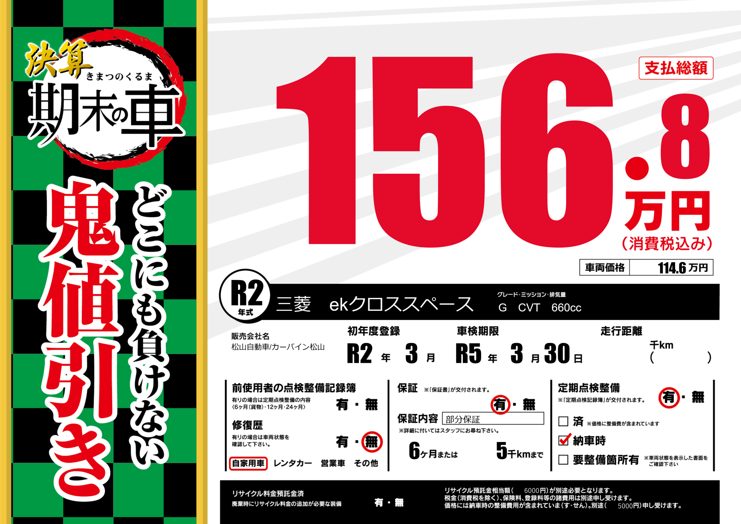 車検制限 | R5年3月30月 |