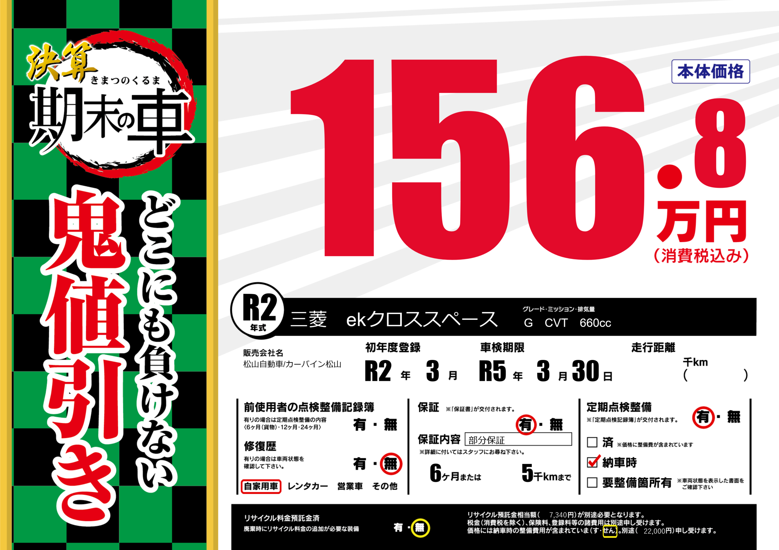 車検制限 | R5年3月30月 |